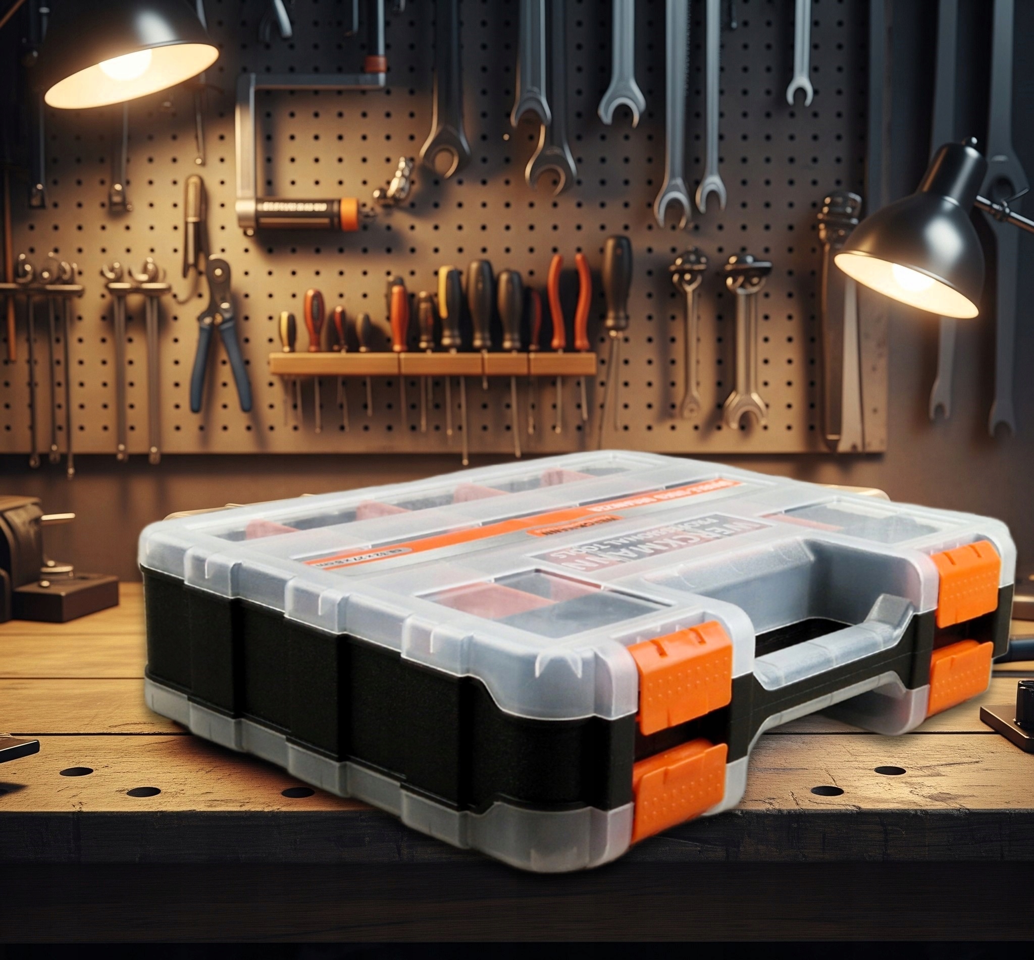 Postaw na funkcjonalność, porządek i wygodę – wybierz organizer warsztatowy dwustronny z 34 przegródkami i przekonaj się, jak proste może być utrzymanie ładu!