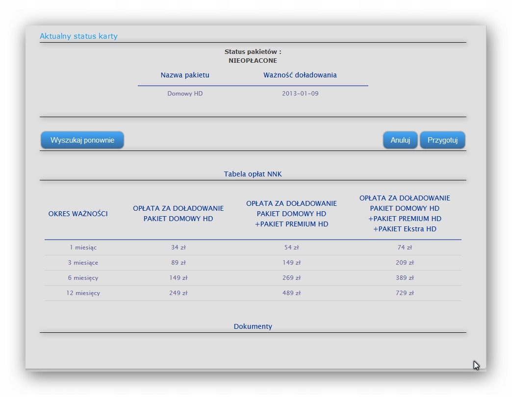 Przedmiotem sprzedaży jest unikatowa karta dostępu umożliwiająca zakup pakietu DOMOWY HD