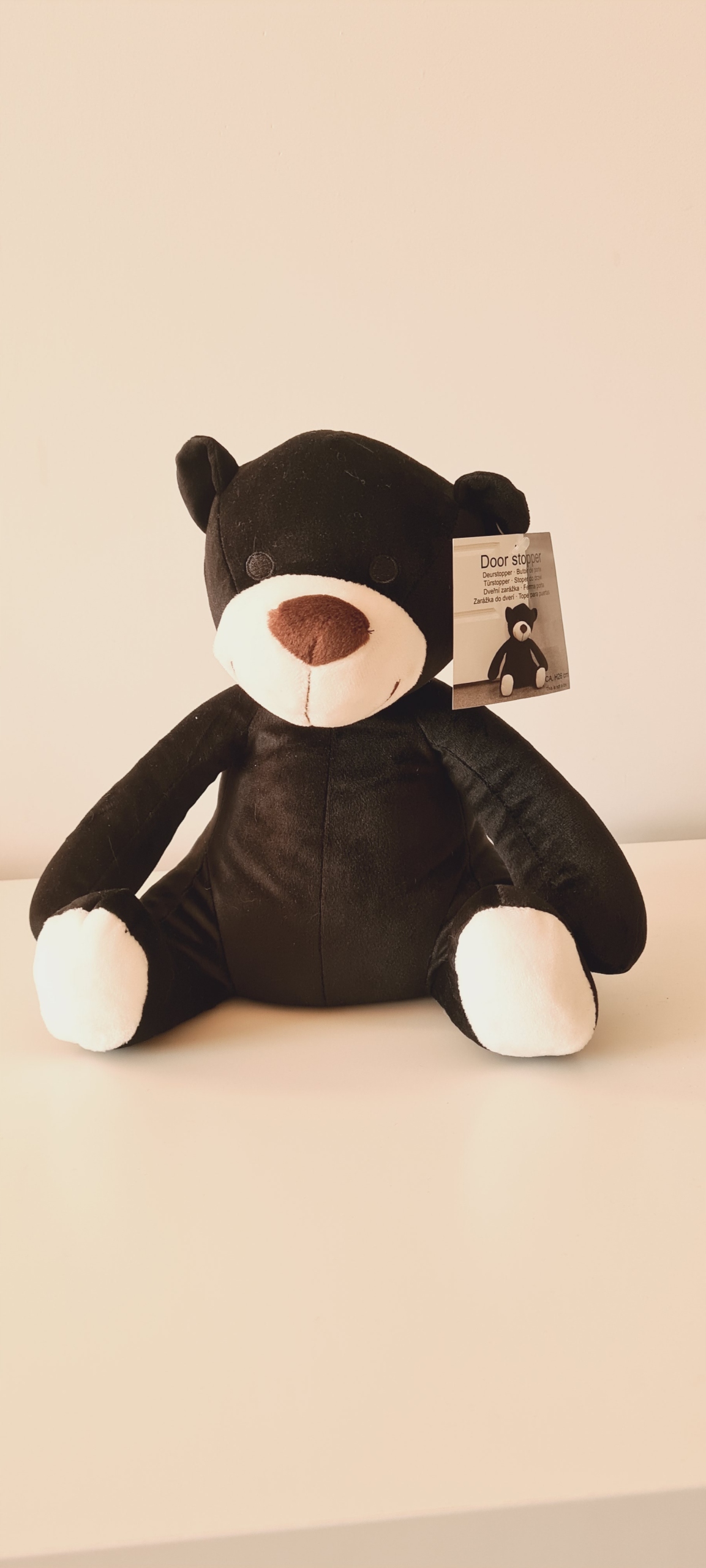 Ładny ogranicznik do drzwi w kształcie misia! Wykonany niczym pluszowa zabawka z miękkiego materiału.