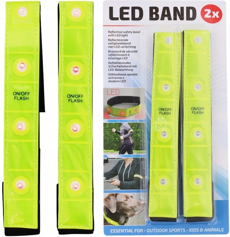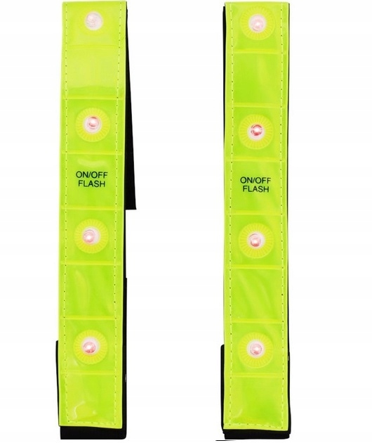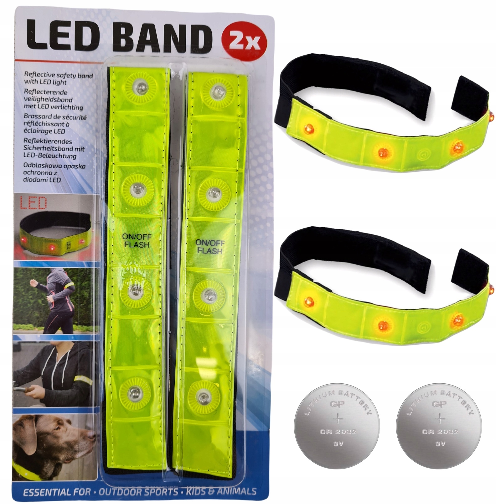 Zapewnij sobie dobrą widoczność podczas wieczornego spaceru lub joggingu dzięki odblaskowym, świecącym opaskom na ramię. Dołączono do nich baterie, więc nadają się do natychmiastowego użytku.