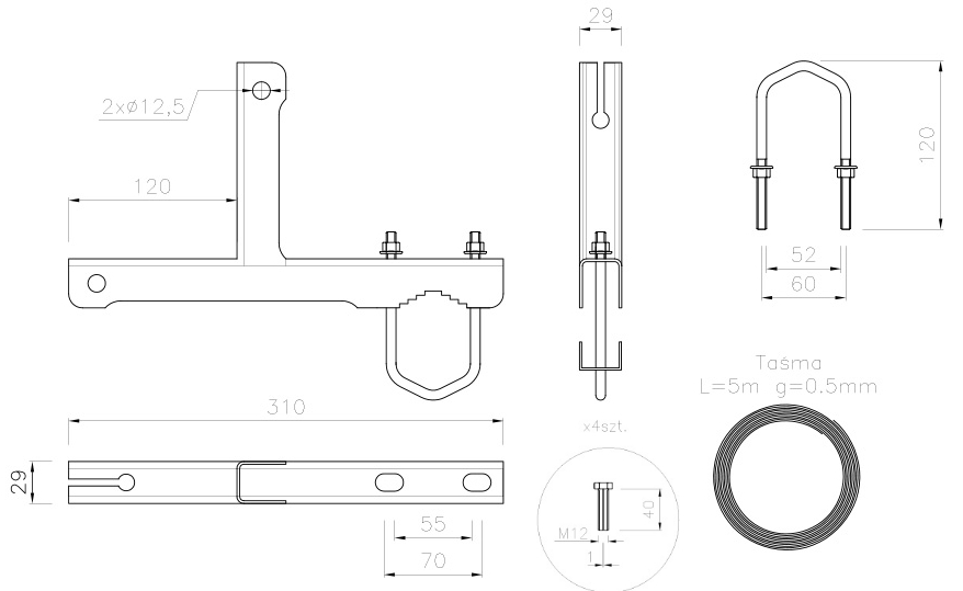 Uchwyty wykonane są ze stali ocynkowanej galwanicznie