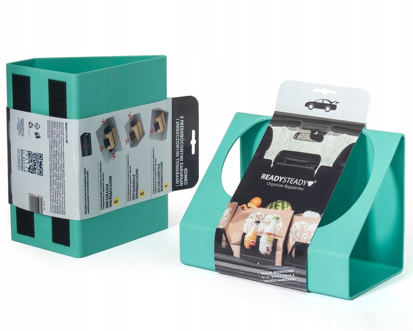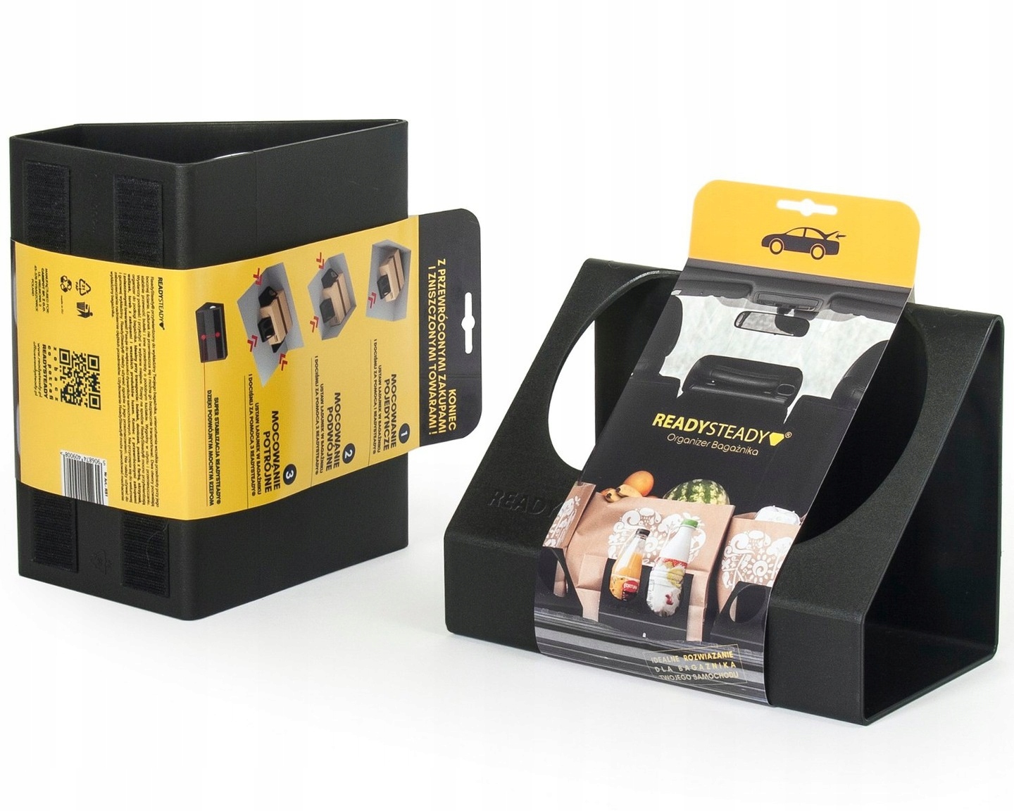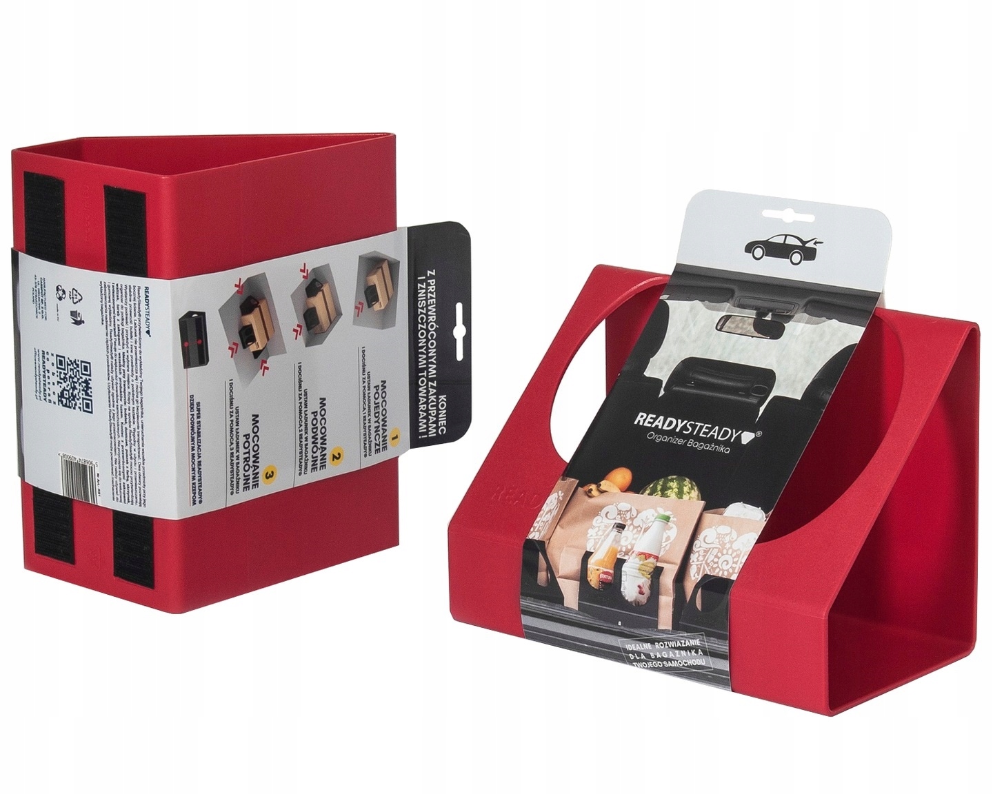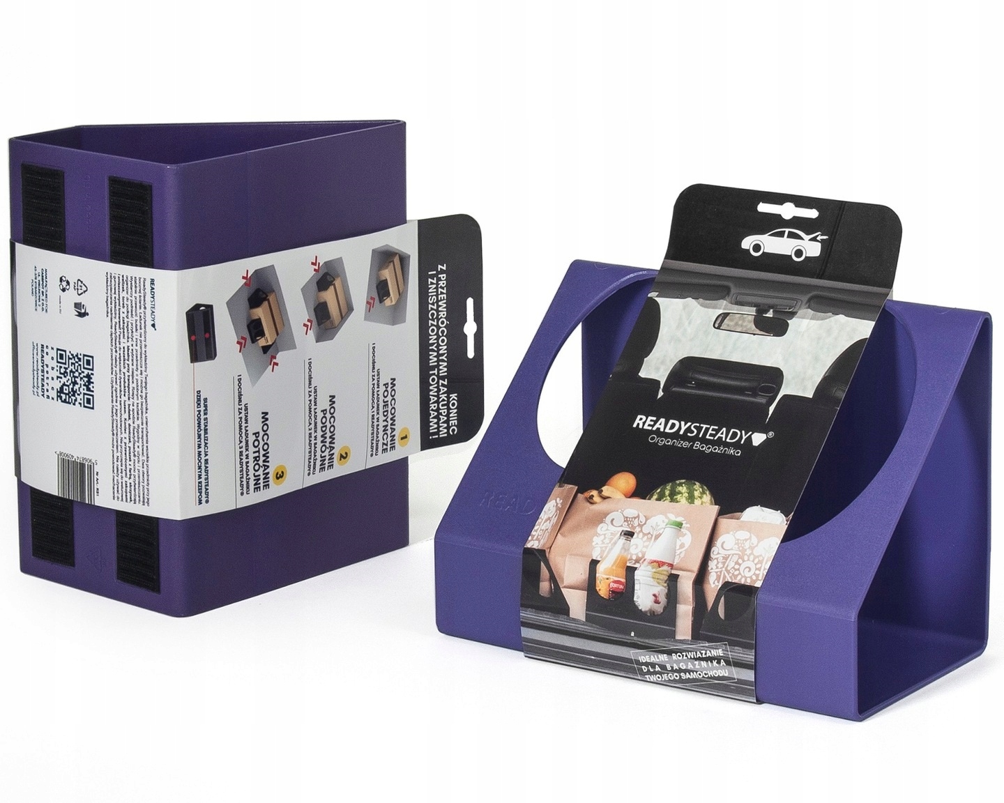 • Wygodny w użyciu i przemieszczaniu. Wystarczy podnieść i przyłożyć w wybrane miejsce. Rzepy na spodzie ReadySteady mocno przytwierdzają organizer do podłogi bagażnika.