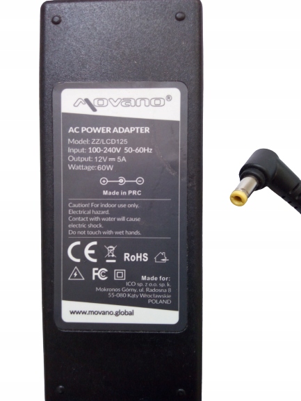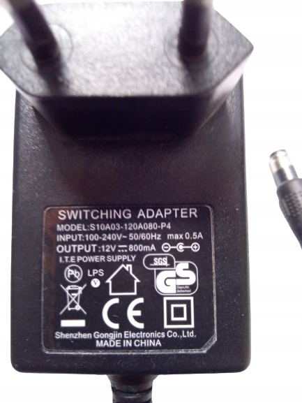 Zasilacz może zasilać urządzenia wymagające napięcia 12V z obciążeniem maksymalnym 0,8A