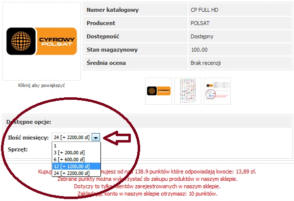 Wybierz dekoder lub moduł CI+ oraz długość trwania pakietu