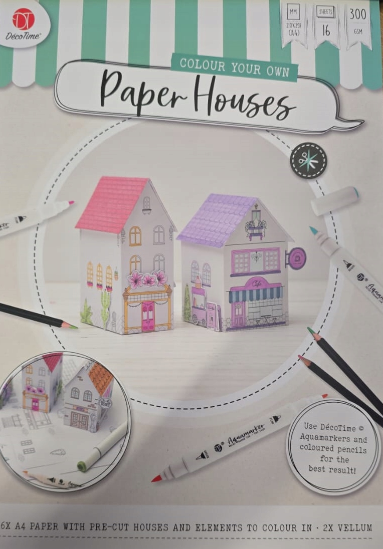 Zbuduj ze sztywnego papieru domki dla pomaluj flamastrami i kredkami i przyklejaj ozdoby