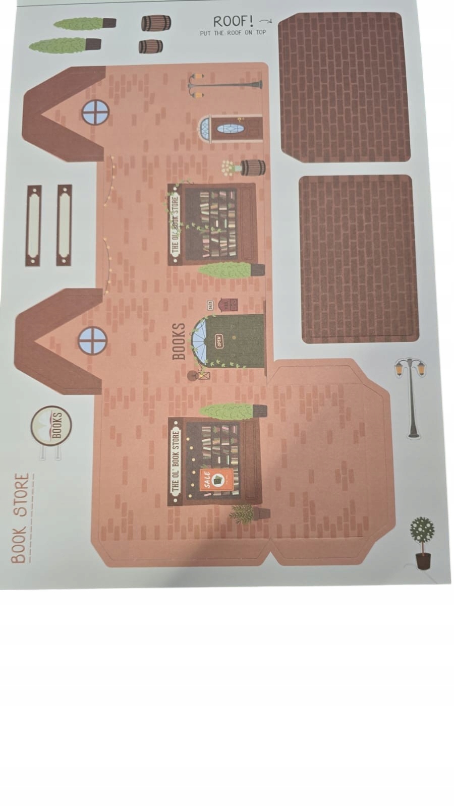Zbuduj ze sztywnego papieru domki takie jak pękna kwiaciarnia pomaluj flamastrami i kredkami i przyklejaj ozdoby
