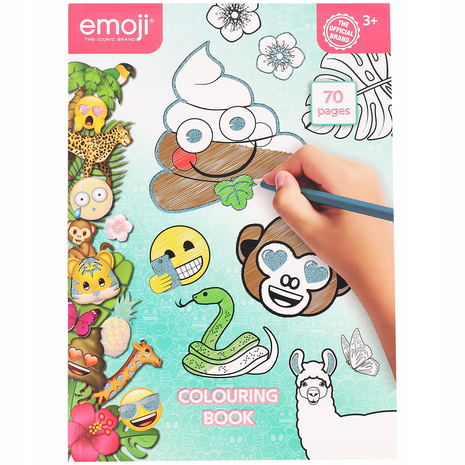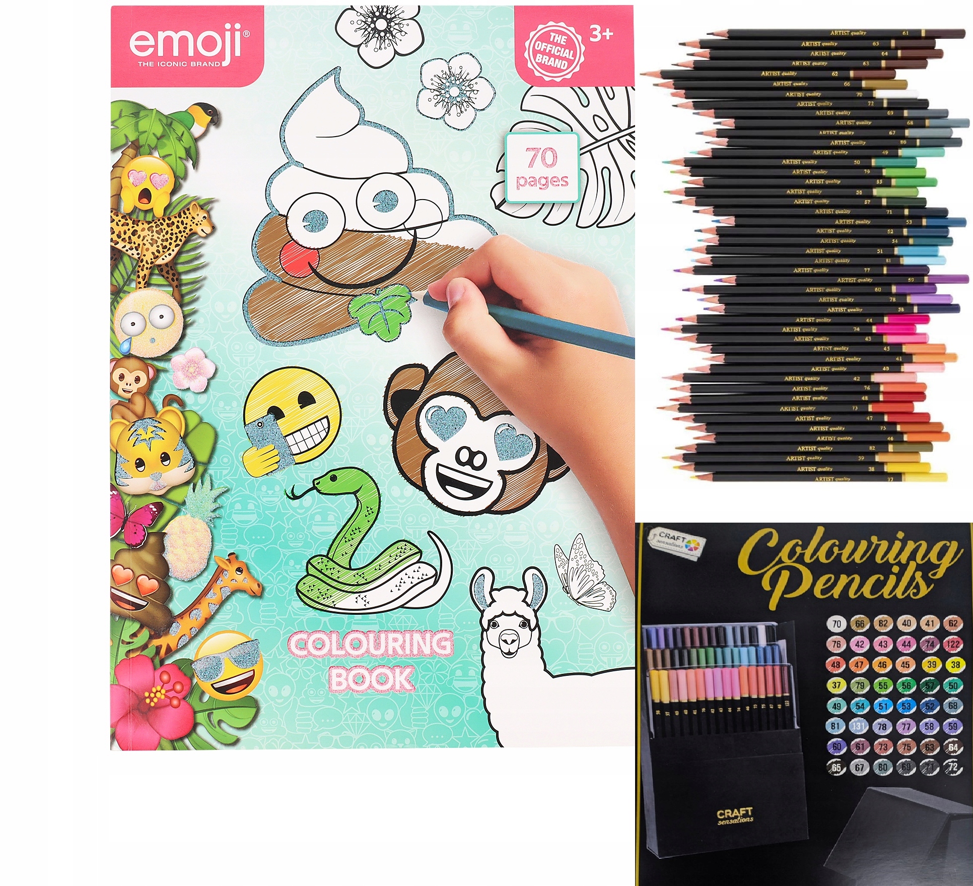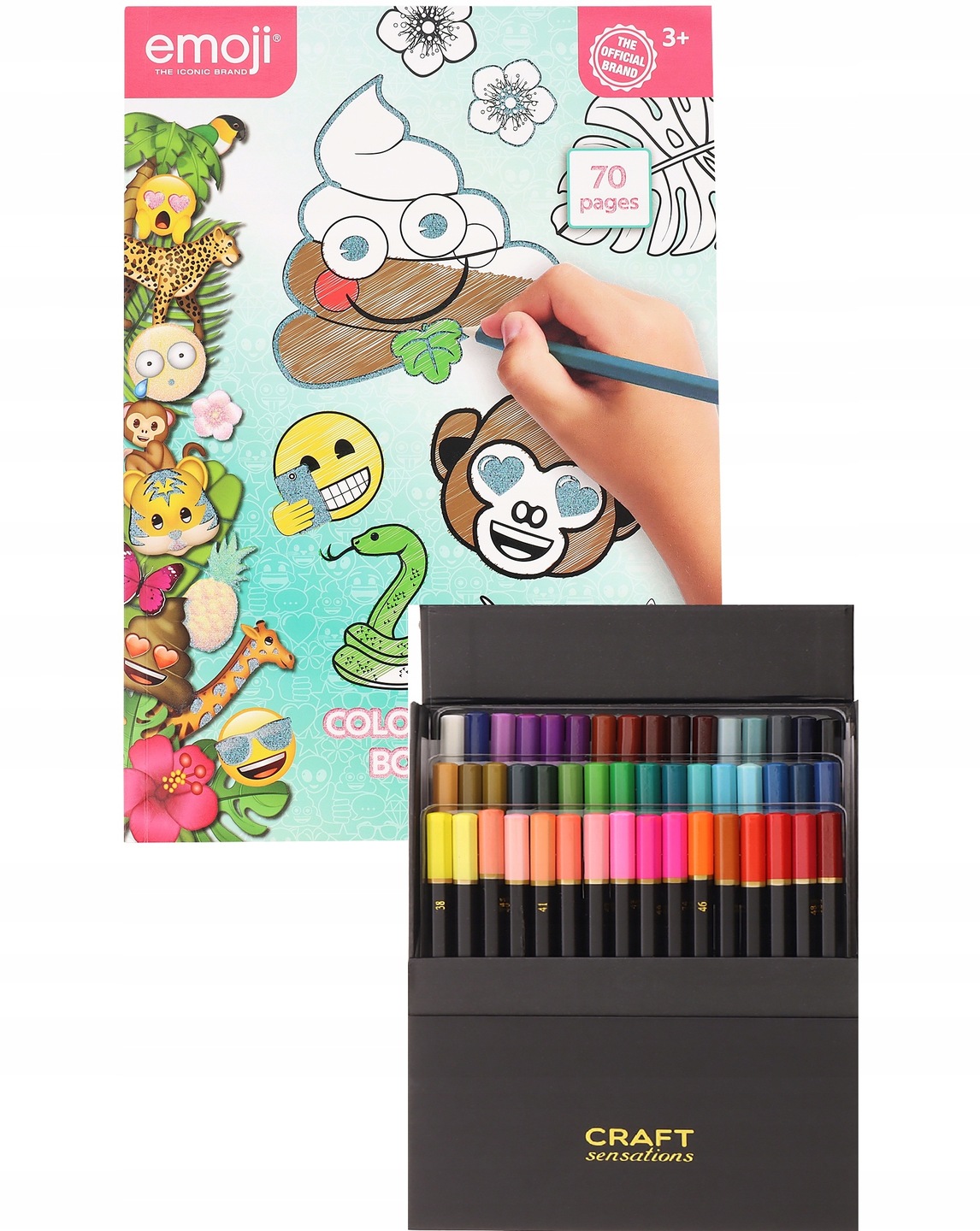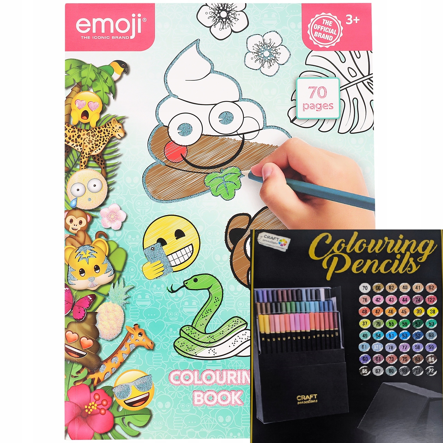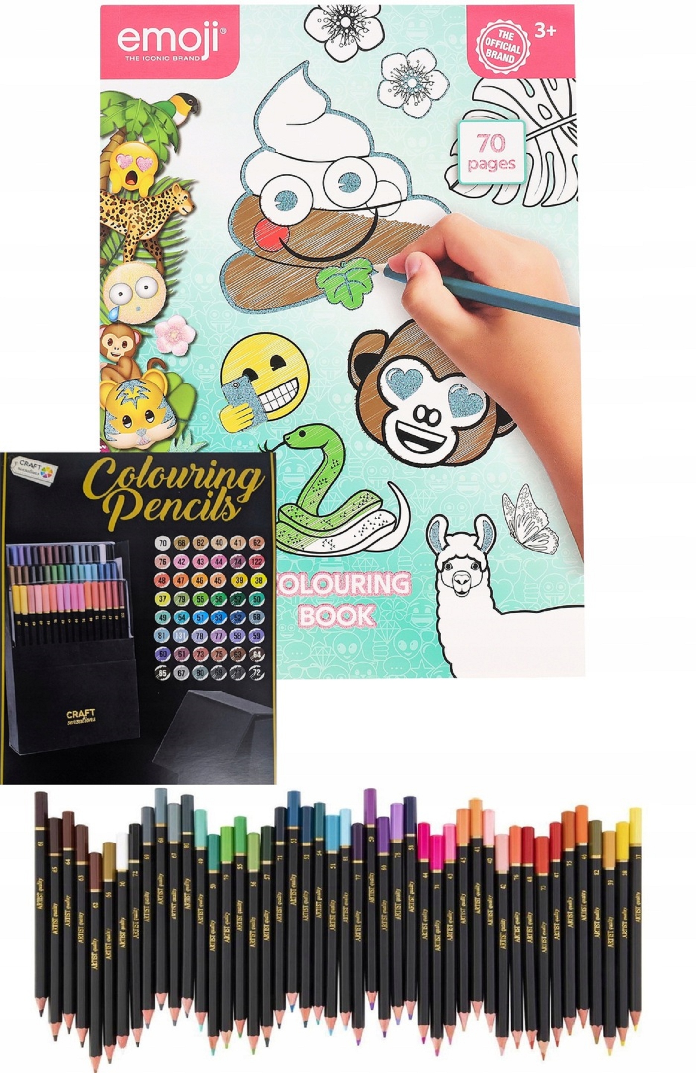 PIĘKNA KOLOROWANKA dla dzieci MALOWANKA EMOJI 70 stron + KREDKI 48 SZT ETUI