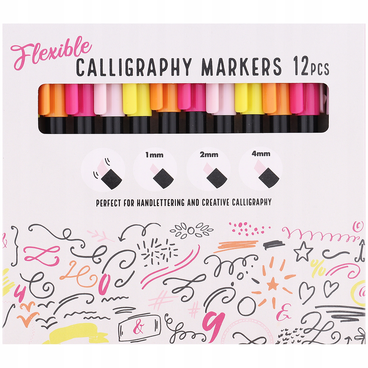 Zestaw 12 pisaków w 4 odcieniach: różowy, żółty, pomarańczowy