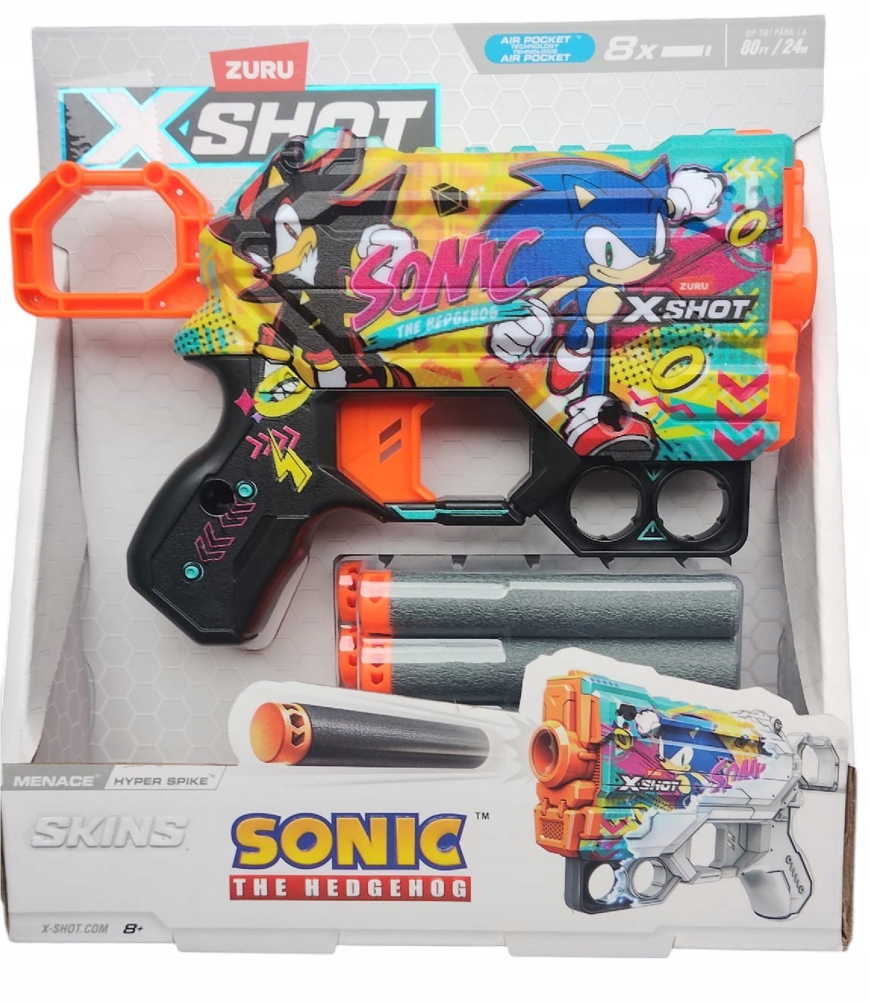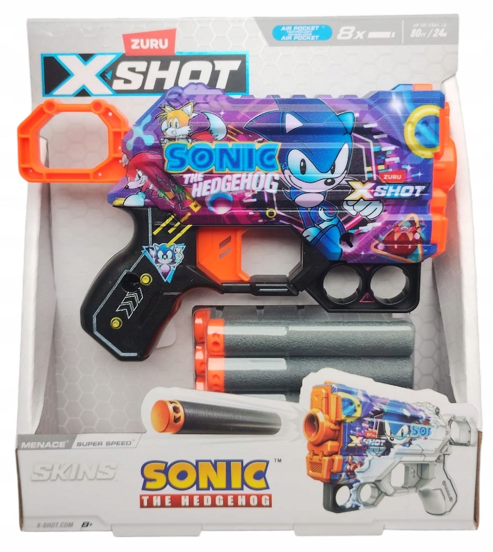 Przygotuj się na superszybką zabawę z małym pistoletem Sonic z serii Zuru X-Shot ROBOTNIK! Ta dynamiczna wyrzutnia z kultowym motywem postaci z gry „Sonic the Hedgehog” to idealna propozycja dla dzieci, które kochają ruch, celność i kolorowe gadżety.