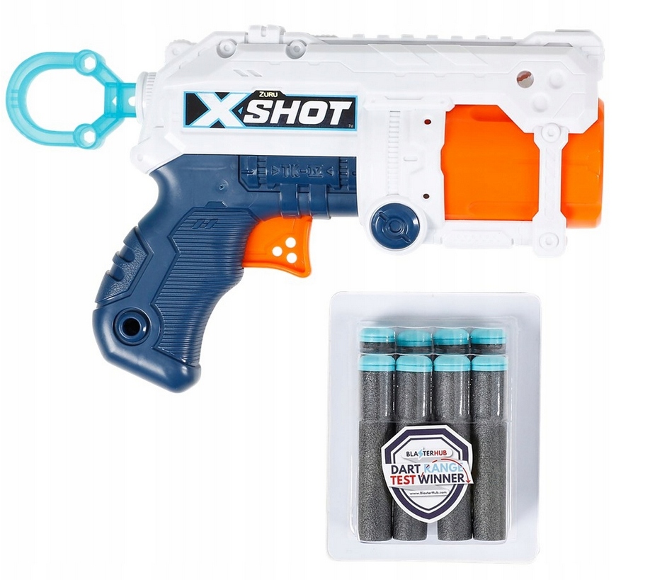 Łap swój pistolet Zuru X FURY i ćwicz strzelanie. Błyskawicznie rozstawisz cyfrową tarczę i rozpoczniesz zabawę. Urządzenie zlicza punkty. A gdy trafisz już wszystkie cele, automatycznie przesuną się wyżej.