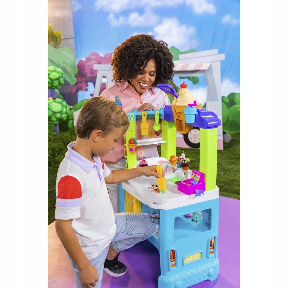 Zestaw Play-Doh Wielka Lodziarnia na Kółkach otworzy przed Twoim dzieckiem drzwi do niekończącej się zabawy. Zestaw ten oferuje ponad 25 fantastycznych akcesoriów oraz 12 tub kolorowej ciastoliny, które pozwolą stworzyć i udekorować najsmaczniejsze lodowe desery. Teraz można z łatwością wyrabiać i formować zakręcone lodowe rożki, wspaniałe lody i wiele więcej!