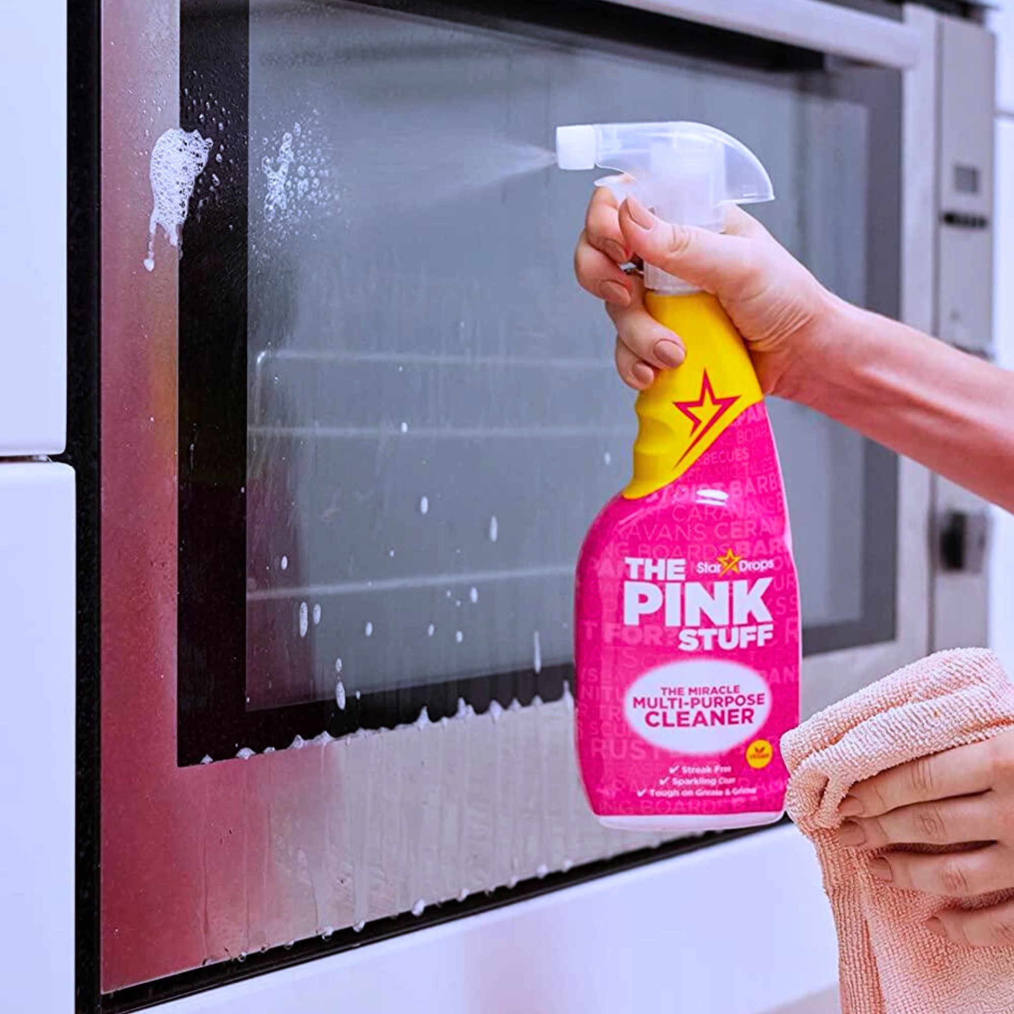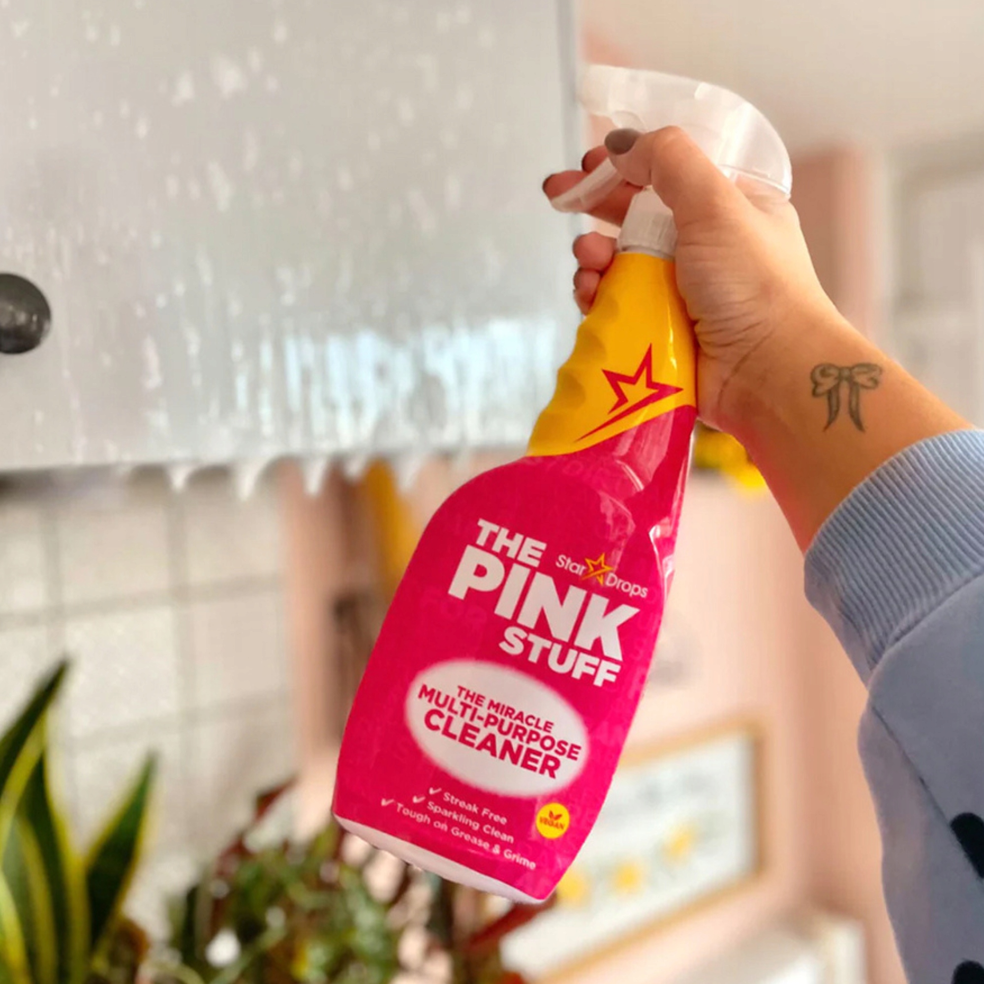 THE PINK STUFF Multi-Purpose Cleaner to wielofunkcyjny środek czyszczący w sprayu. Doskonale czyści twarde powierzchnie, pozostawiając je lśniące i bez smug. Usuwa tłuszcz i brud. Perfekcyjnie dba o czystość kuchni i innych pomieszczeń.
