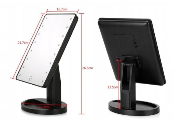 Stabilna, szeroka podstawka podświetlanego lusterka umożliwia jego bezpieczną i sprawną obsługę. Znajduje się w niej także specjalne zagłębienie, w którym można przechowywać drobne kosmetyki lub przedmioty, aby nie zsunęły się ze stołu.