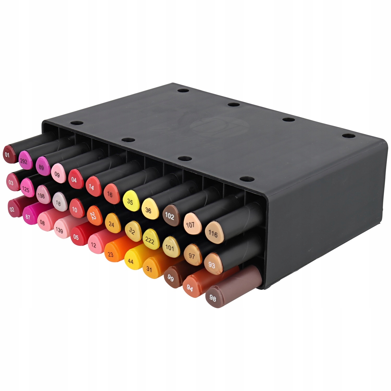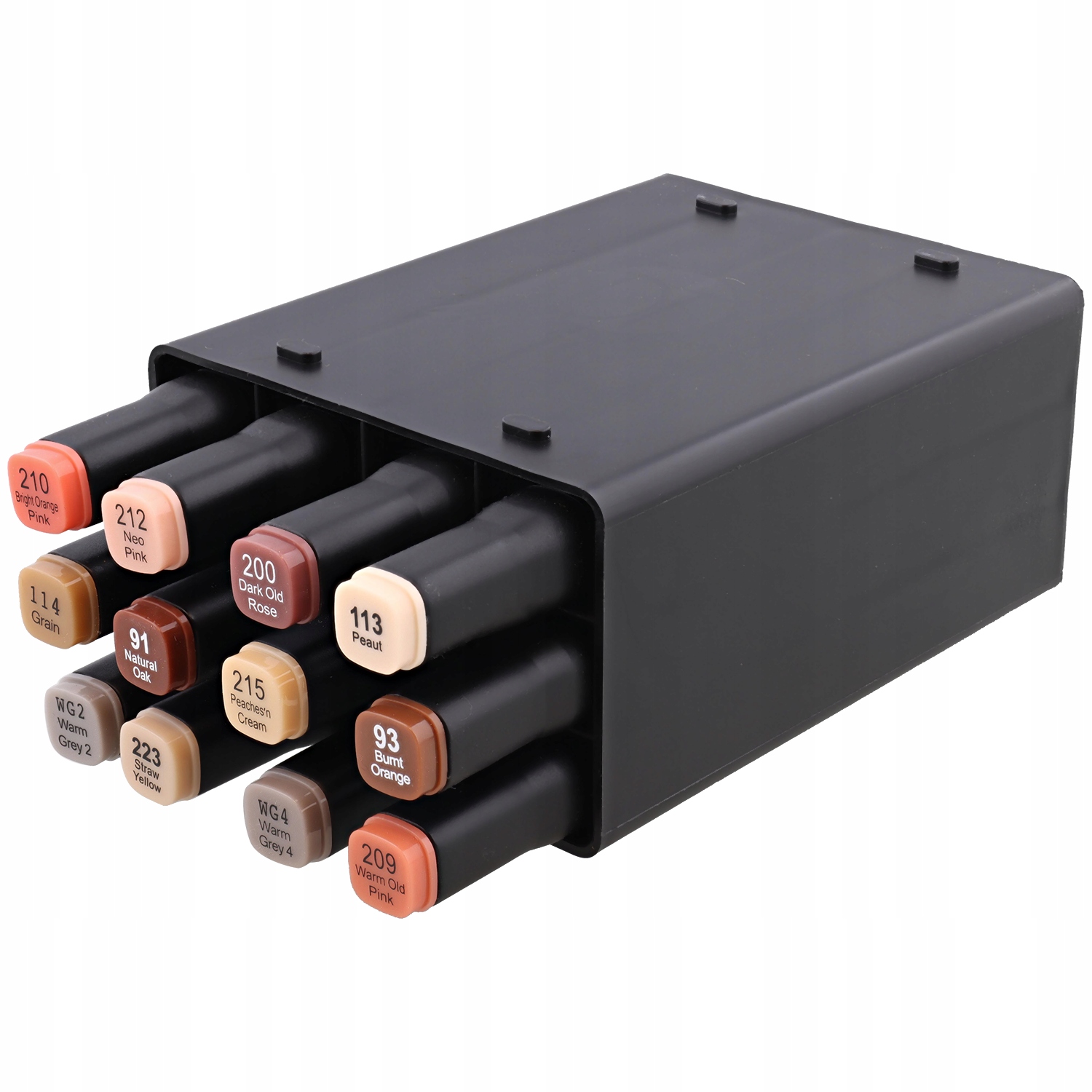 Każdy zestaw kolorystyczny w wygodnym plastikowym etui, które możesz ustawiać na swojej kolekcji Twinmarkerów