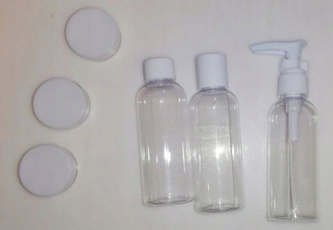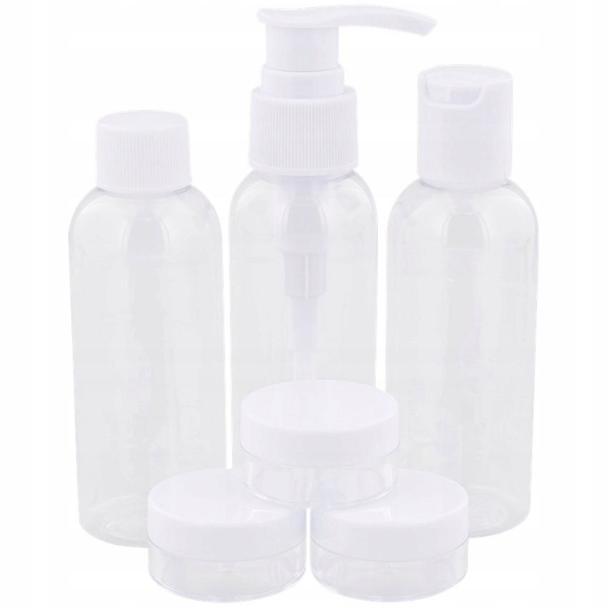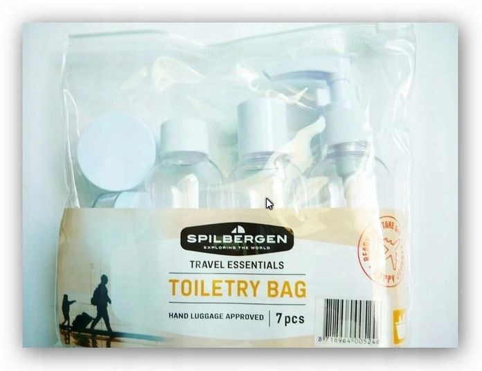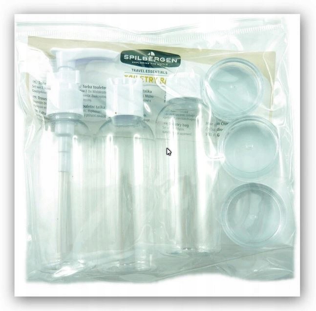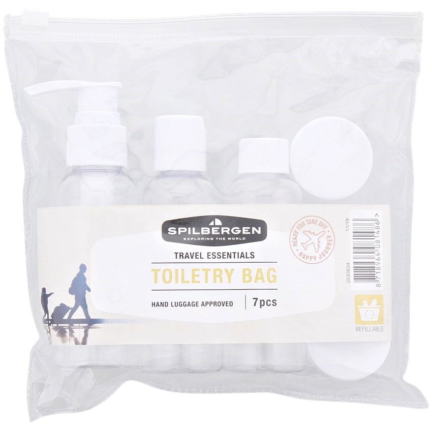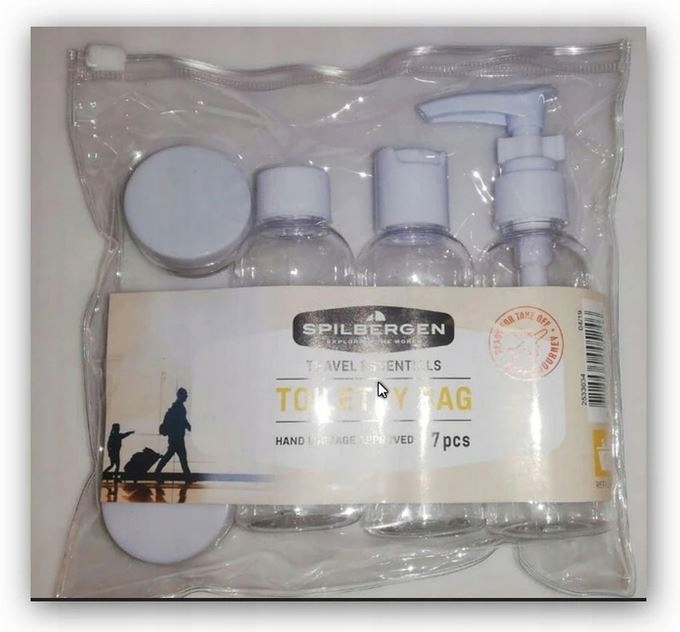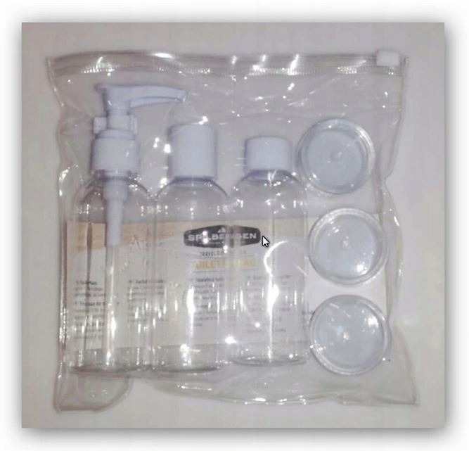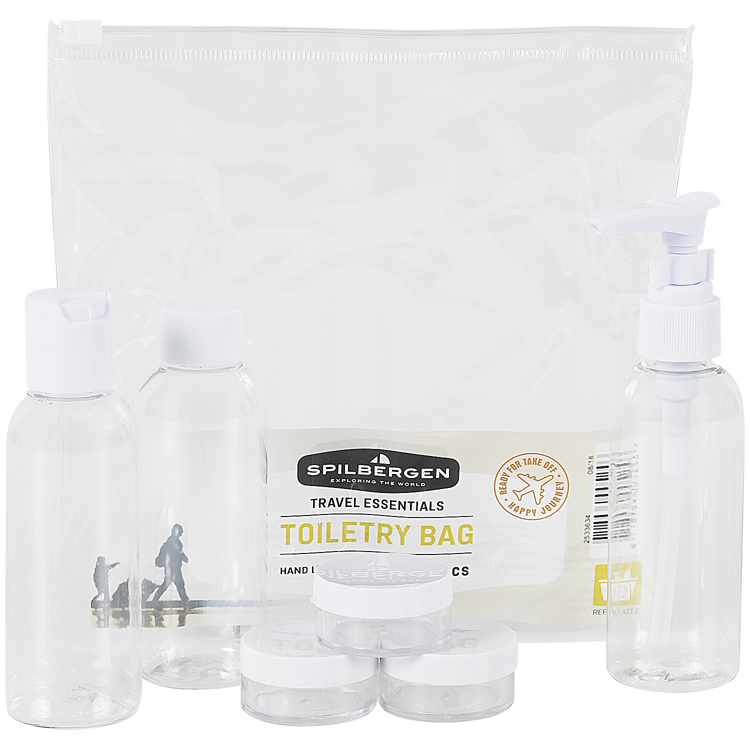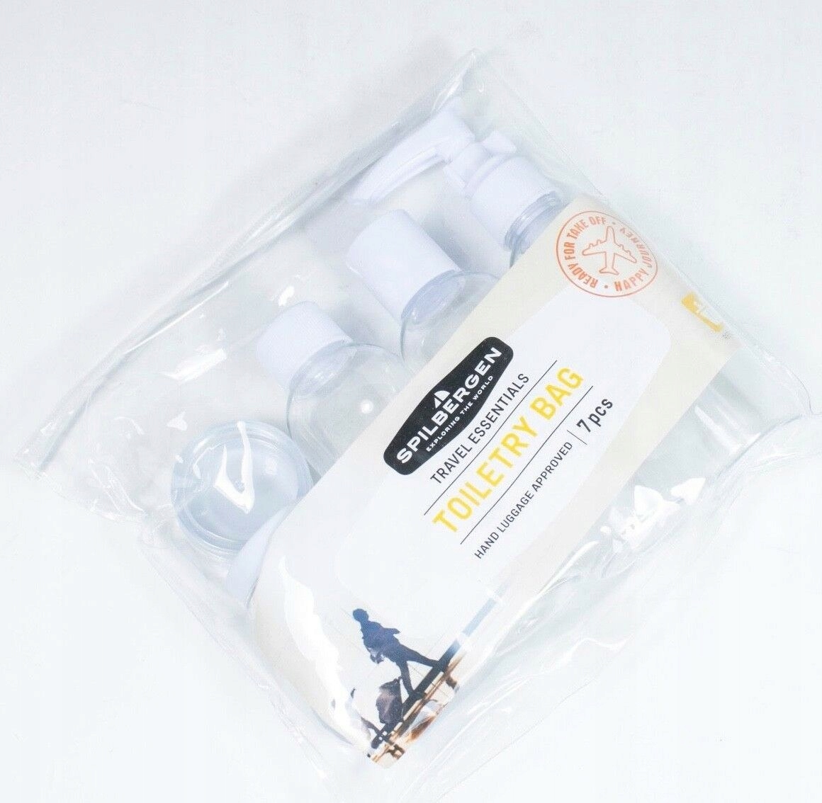 Zestaw siedmiu pojemniczków idealnych do przelania żelu lub płynu dezynfekcyjnego, czy innych produktów kosmetycznych. Zabierz kosmetyki ze sobą w bagażu podręcznym w tym praktycznym, przezroczystym etui podróżnym. Idealny zestaw na wyjazd czy lot samolotem.
