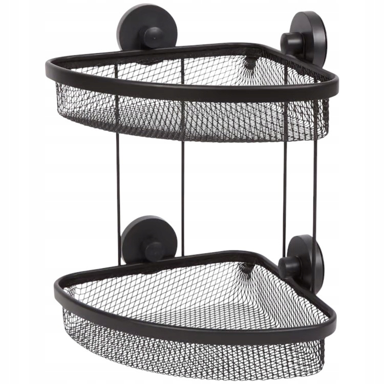 Oferujemy wysokiej jakości narożną półeczkę na akcesoria kąpielowe, montowaną na 4 przyssawki do ściany