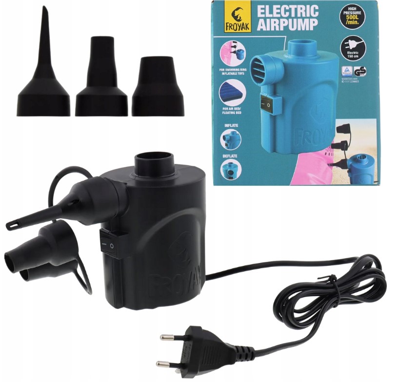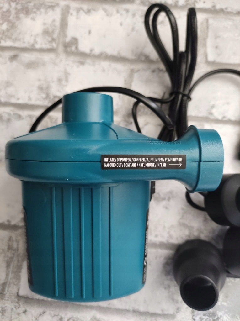 Dzięki elektrycznej pompce szybko nadmuchasz materac dmuchany, basen lub nadmuchiwaną łódkę!