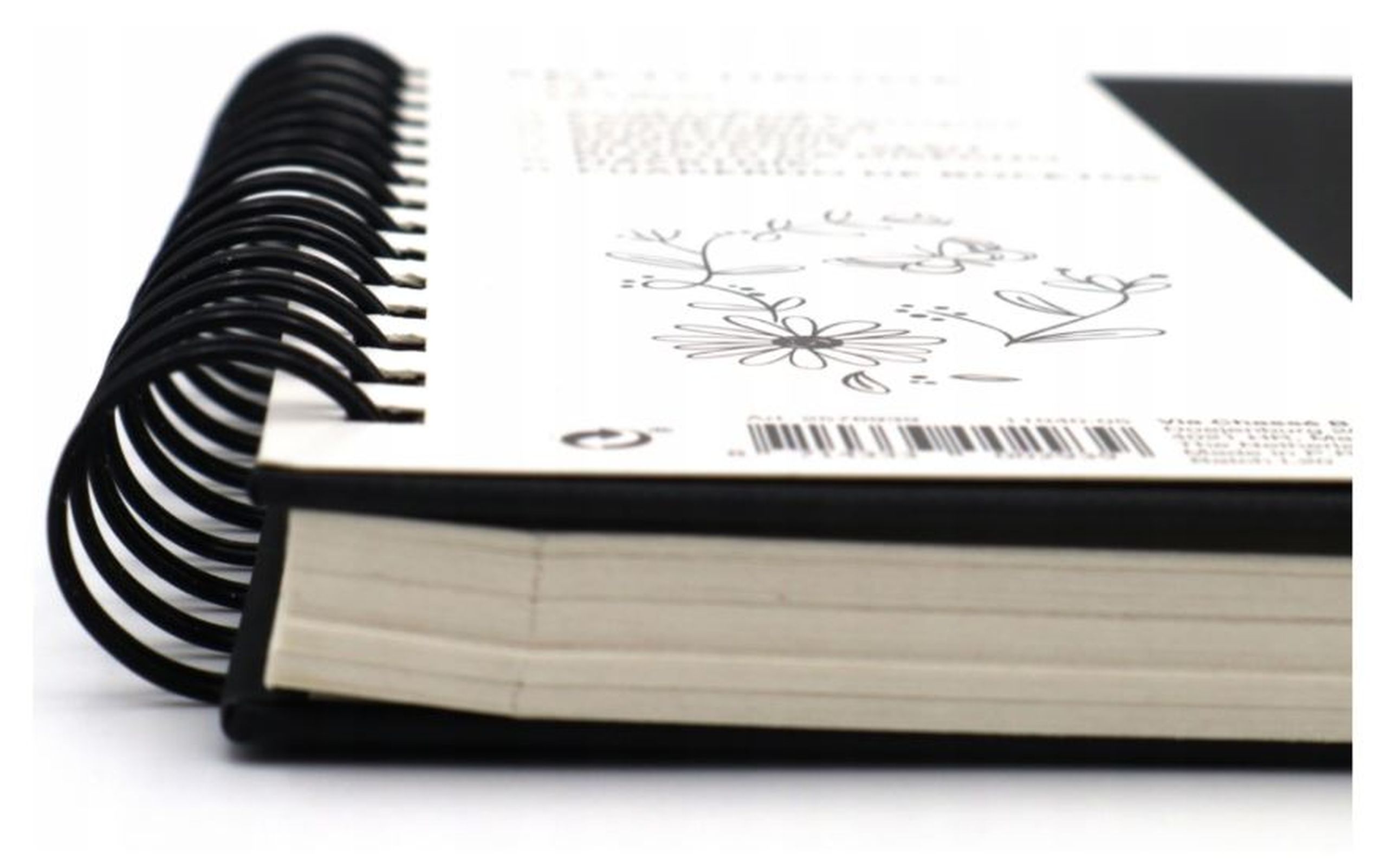 Jedne i drugie będzie można tworzyć dość wygodnie dzięki poręcznej oprawie i spiralnego mocowania grzbietu, pozwalającym na dokładne przyleganie przekładanych stron i sprawny uchwyt podczas używania.