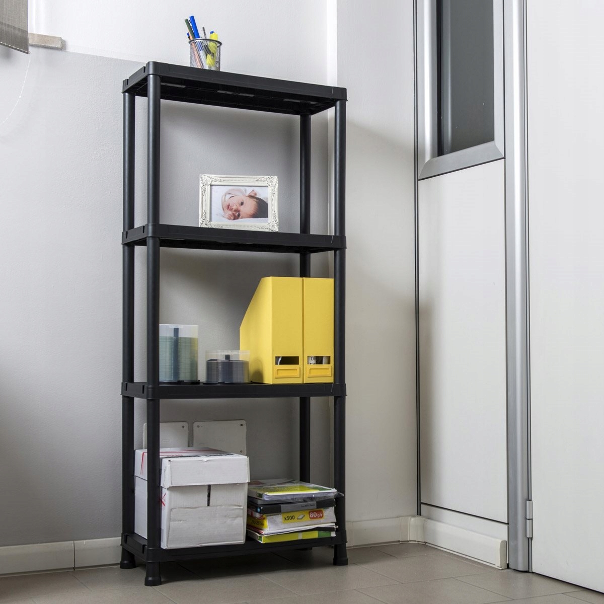 Stwórz miejsce do przechowywania w pomieszczeniu gospodarczym za pomocą regału z 4 półkami