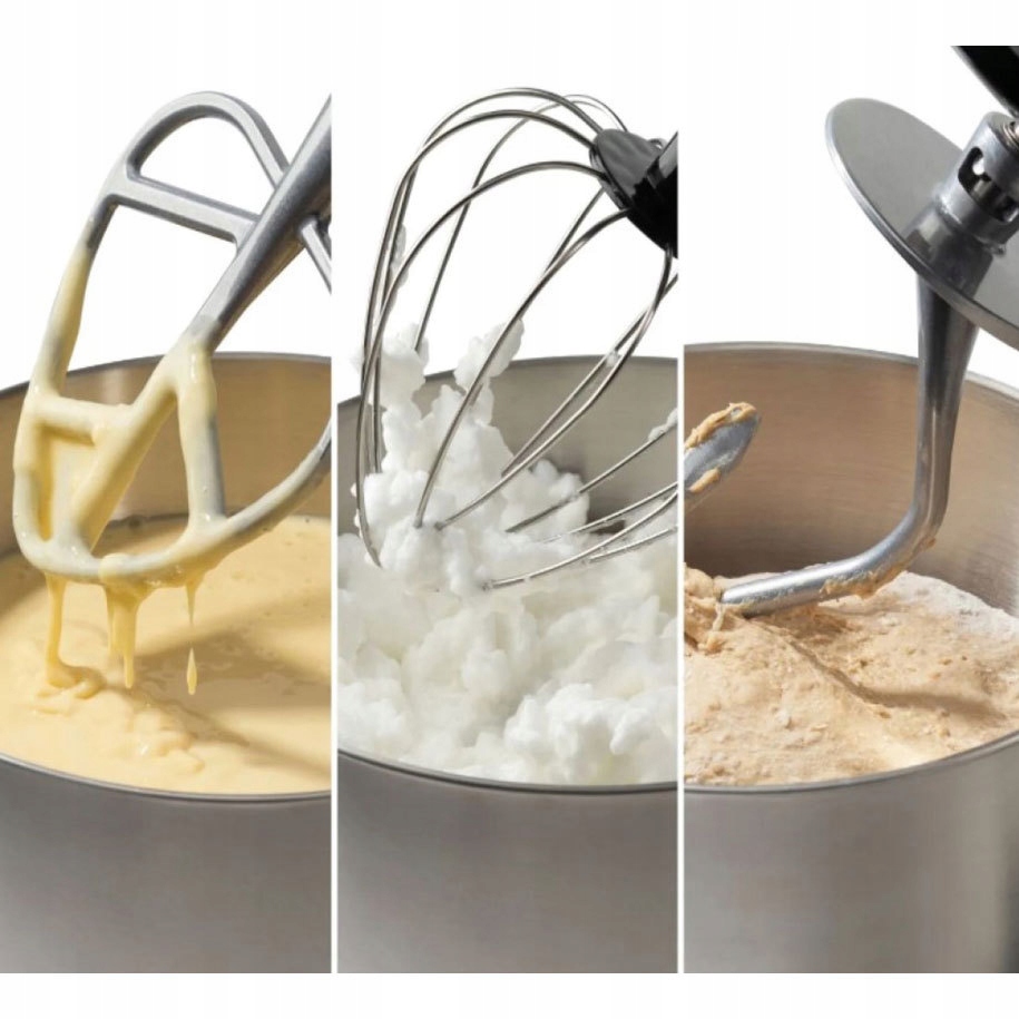 Końcówka mieszająca obraca się naokoło swojej osi w momencie w którym głowica obraca się w przeciwną stronę co sprawia, że wszystkie składniki są dokładnie wymieszane. W cieście będzie powietrze dając ciastu miękkość i elastyczność. To co musisz zrobić to wybrać właściwe akcesoria do przepisów a potem już tylko wywierać wrażenie doskonałymi wypiekami.