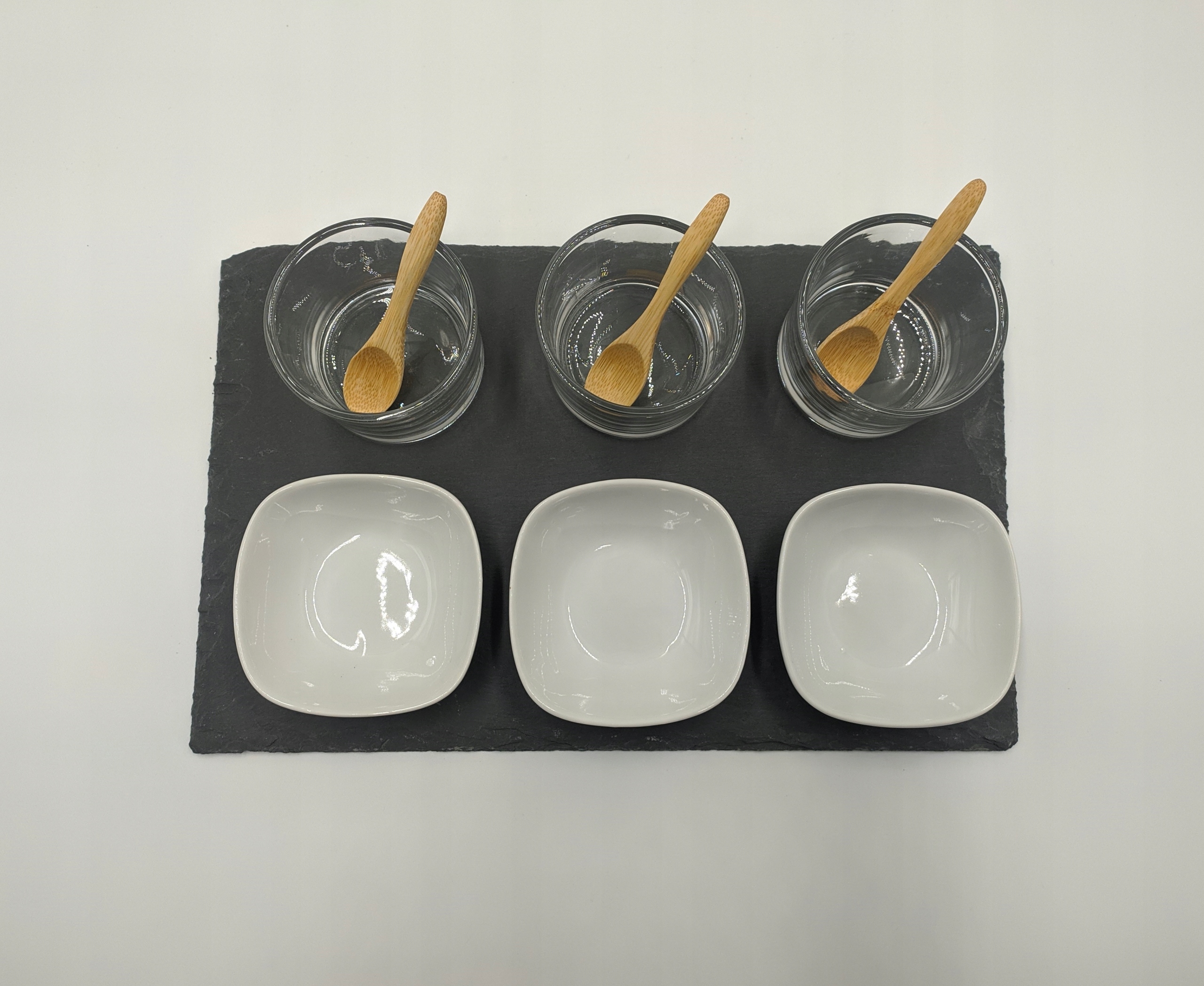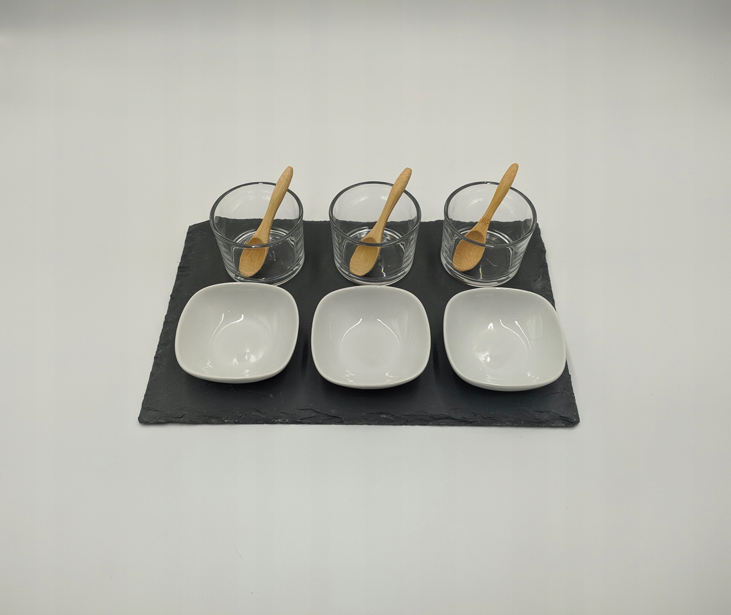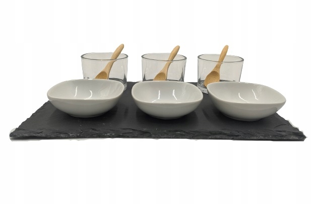 Zestaw do serwowania przekąsek i sosów jest przeznaczony dla do indywidualnego serwowania dań lub podawania przekąsek na stół, będzie więc idealnym pomysłem na imprezę lub świąteczny stół
