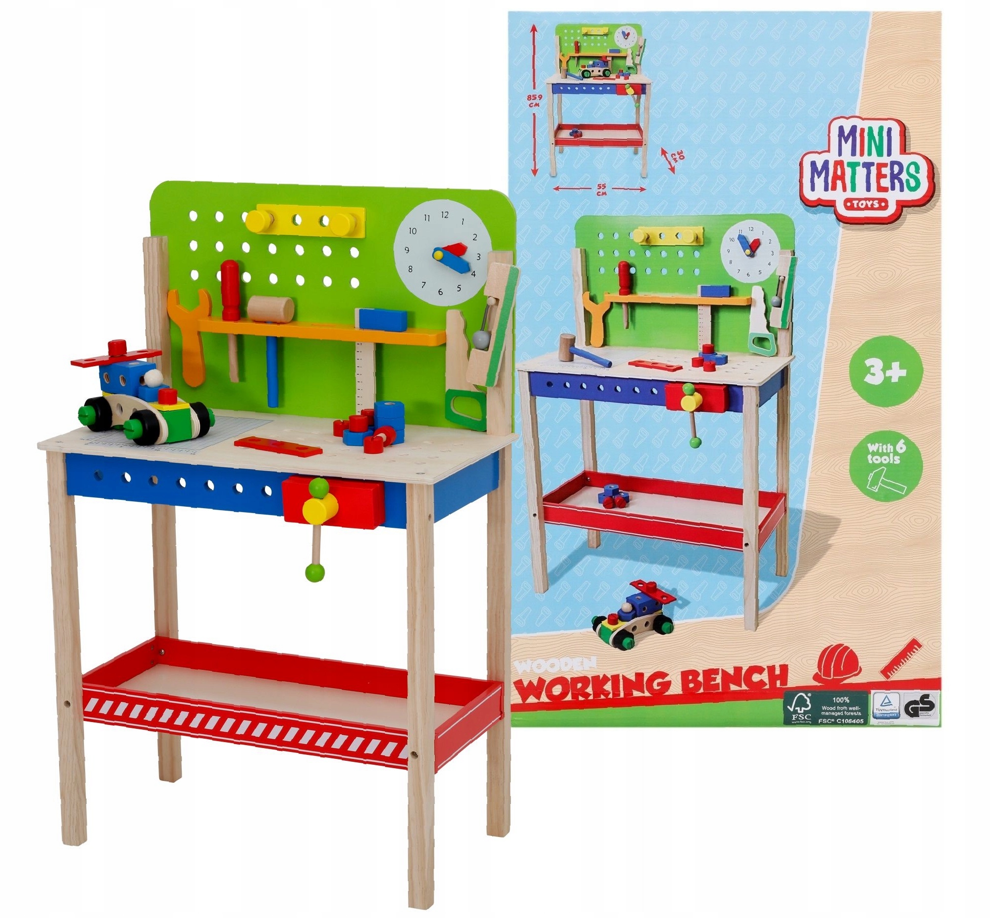 Każdy chłopiec uwielbia majsterkować. Możecie Państwo sprawić dziecku niespodziankę w postaci tego drewnianego warsztatu. Zestaw jest świetnie dopracowany, zapewni dziecku wiele radości.