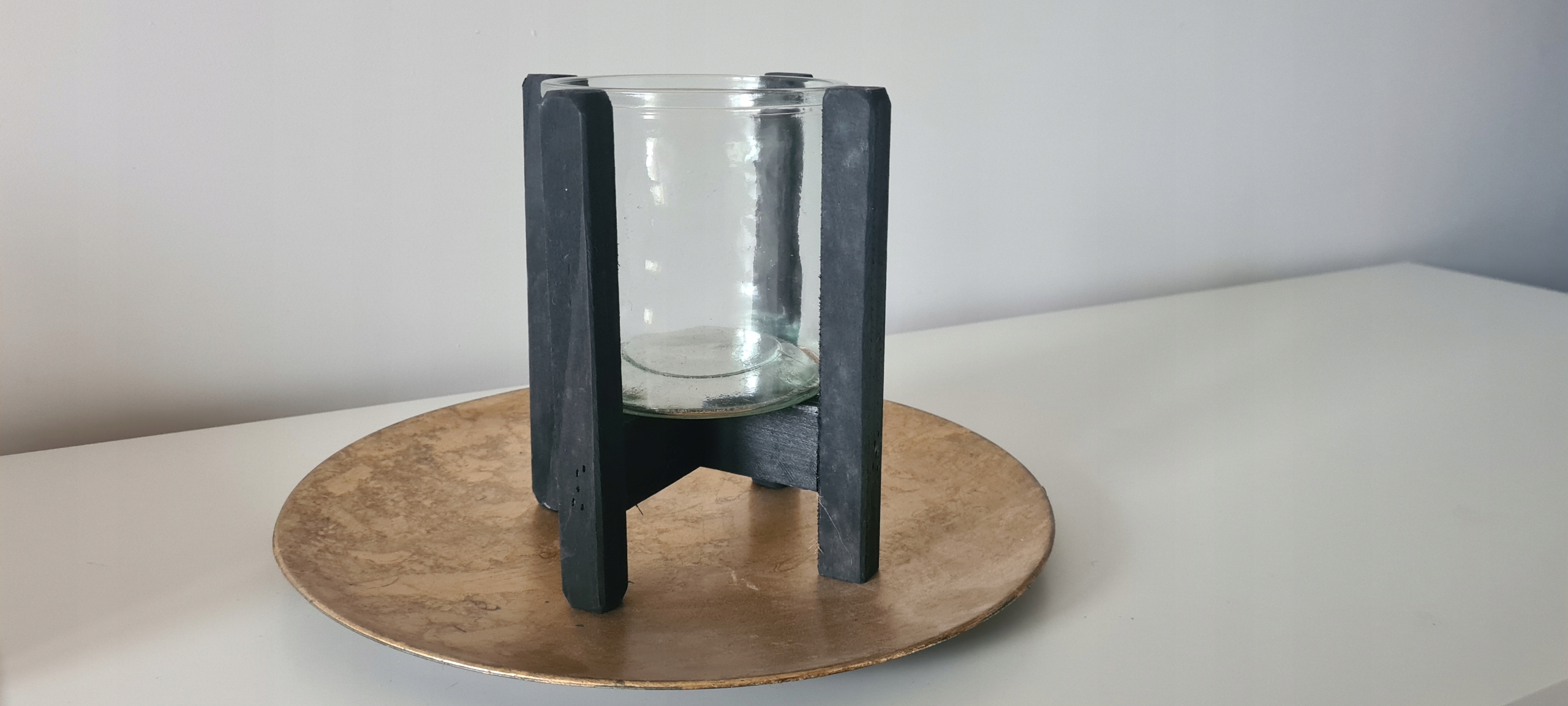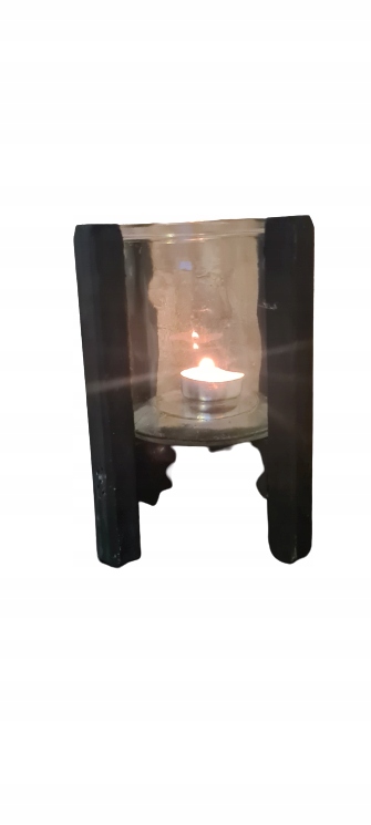 Świecznik ozdobny lampion ozdobny drewno szkło C