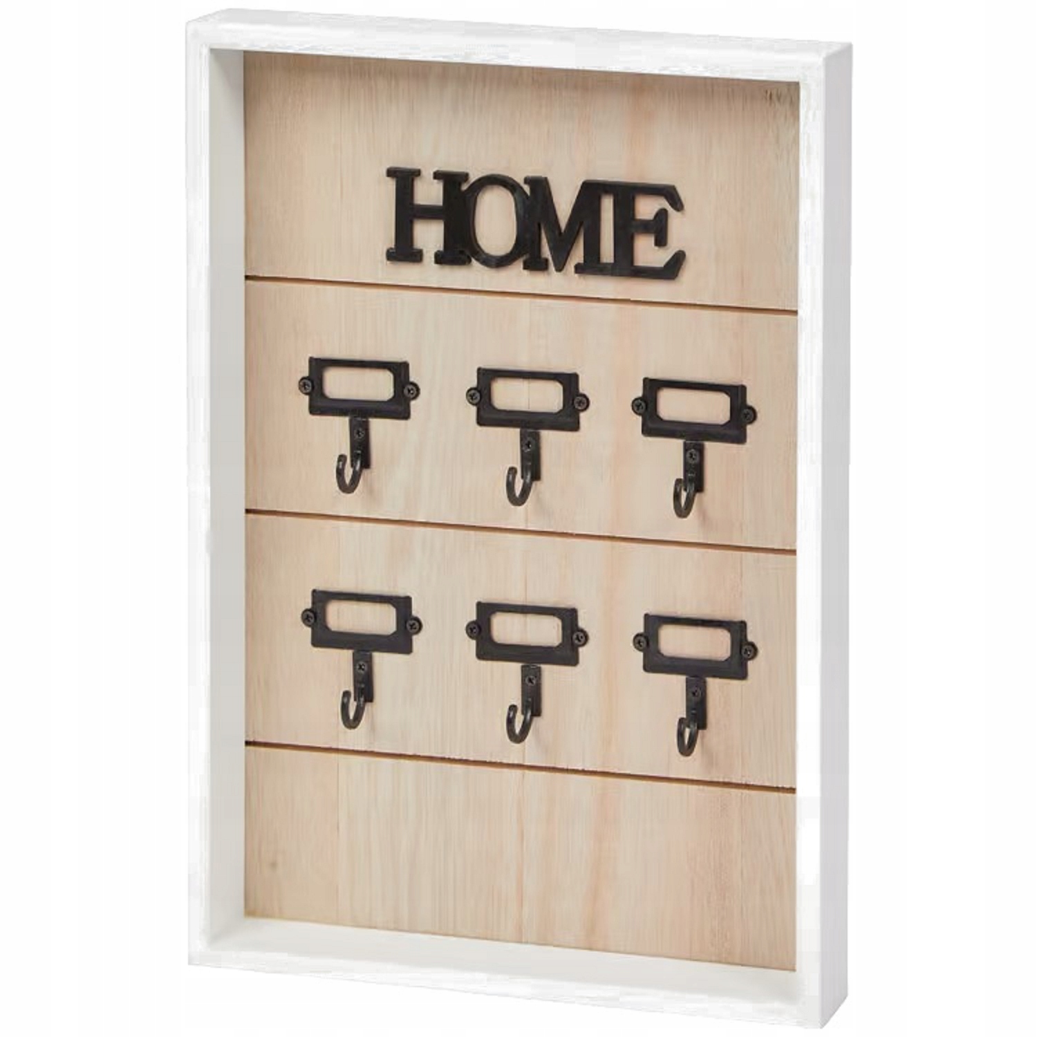 Ładna drewniana szafka na klucze z napisem Home oraz 6 ponumerowanymi haczykami. W ten sposób Twoje klucze są bezpiecznie przechowywane i zawsze możesz je znaleźć.
