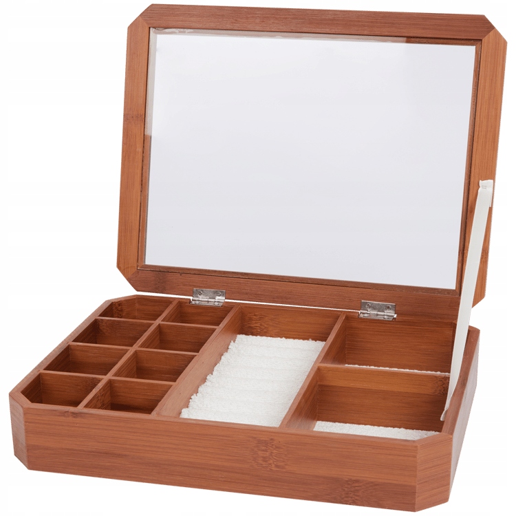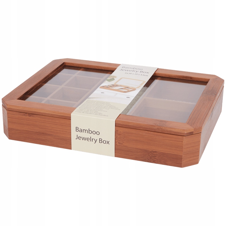 Bambusowa szkatułka z aksamitnym wnętrzem będą pięknie wyglądać na przykład na szafce nocnej.
