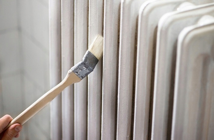⚡️Przed malowaniem grzejnik trzeba oczyścić ze starej farby i rdzy, a potem oczyścić z pyłu. Najwygodniej pomalujemy grzejniki odłączone od instalacji i zdjęte ze ściany.