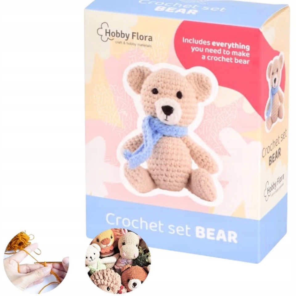 Znajdziesz w nim przędzę szydełko, igłę, wypełniacz oraz szczegółowe instrukcje