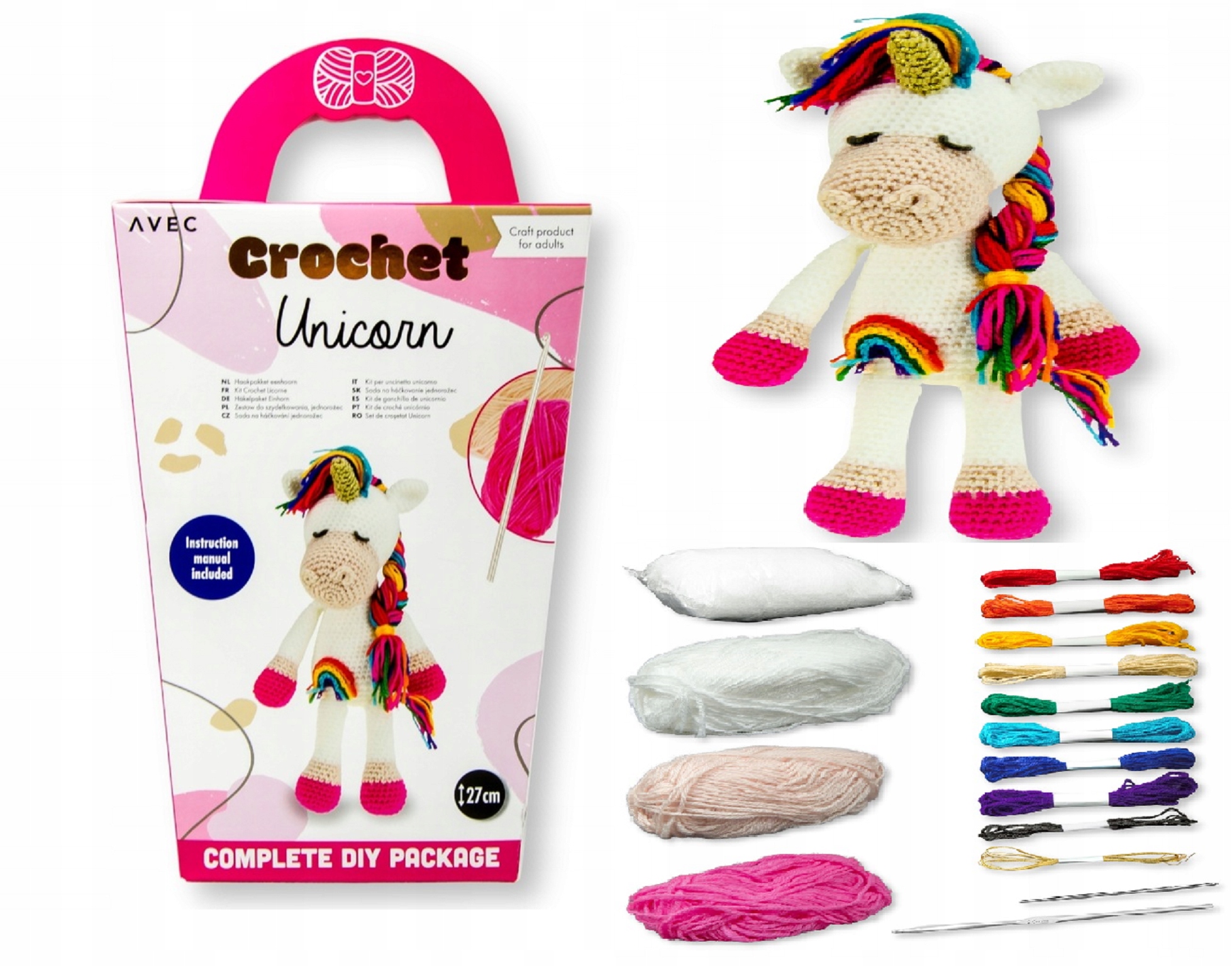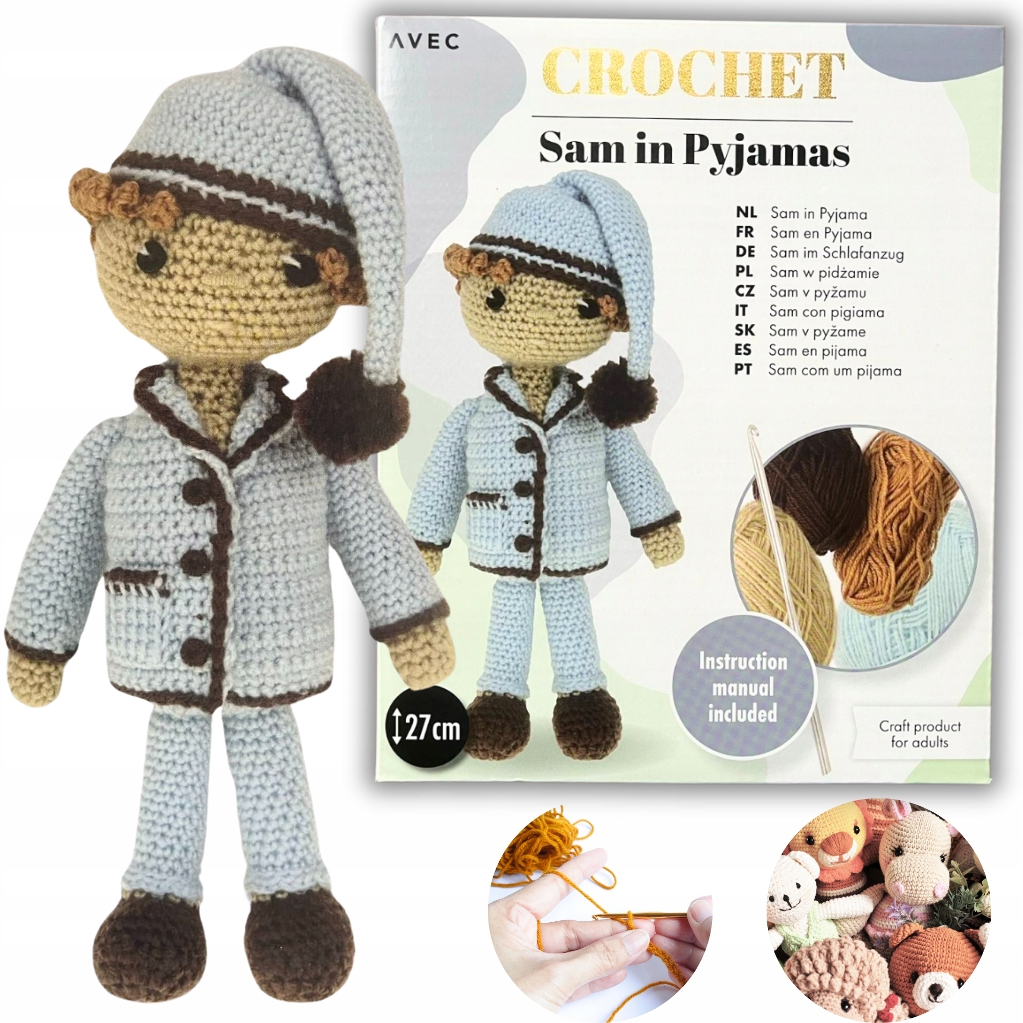 Znajdziesz w nim przędzę szydełko, igłę, wypełniacz oraz szczegółowe instrukcje