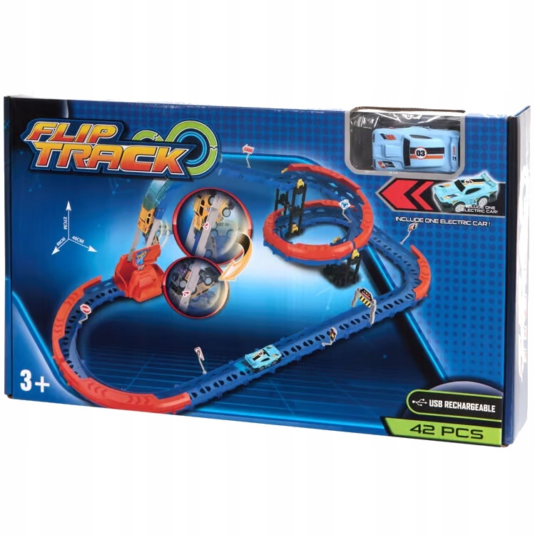 Z samochodem wyścigowym do wielokrotnego ładowania, Z ekstremalnym torem, Z ilością 42 elementów!