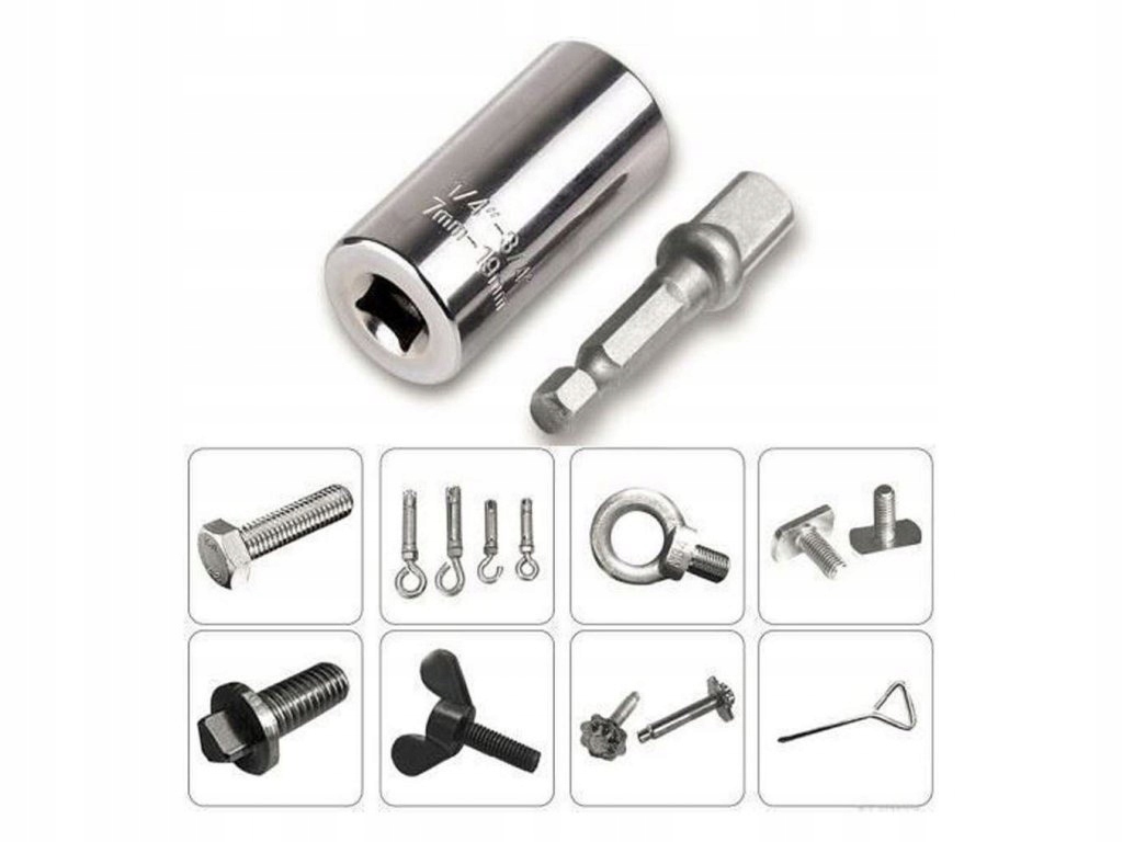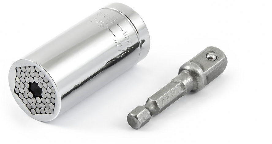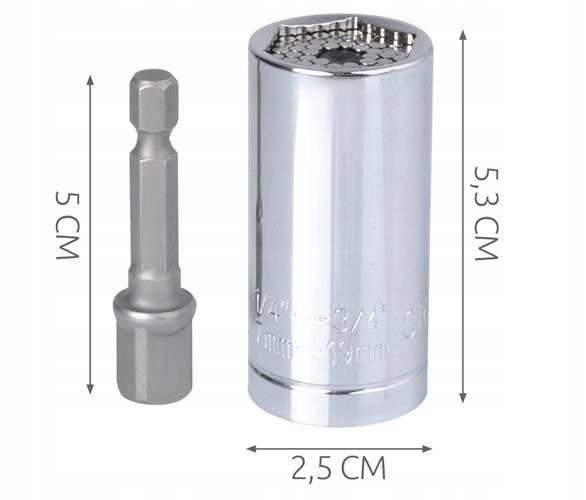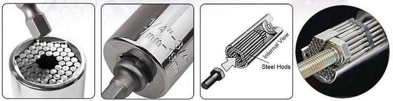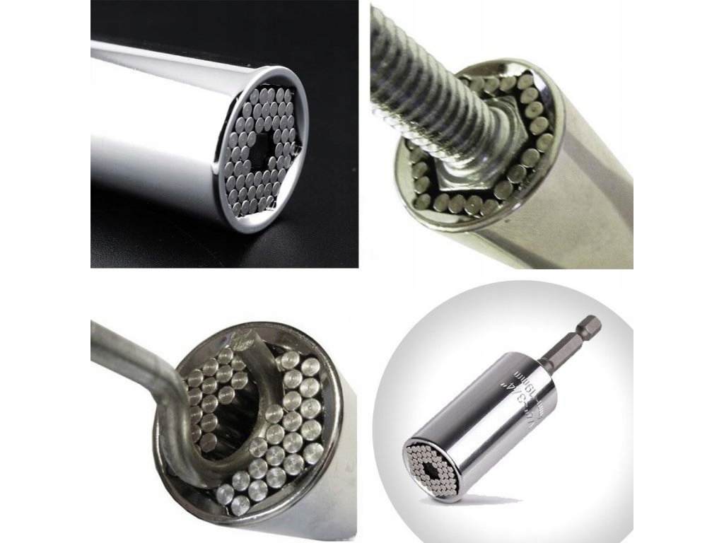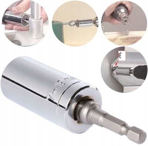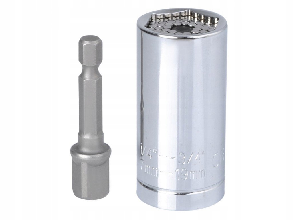 Uniwersalny klucz nasadowy 7-19mm to nasadka typu igiełkowego pasująca do wielu rodzajów łbów. Posiada specjalne metalowe słupki, które dostosowują się do kształtu śruby.