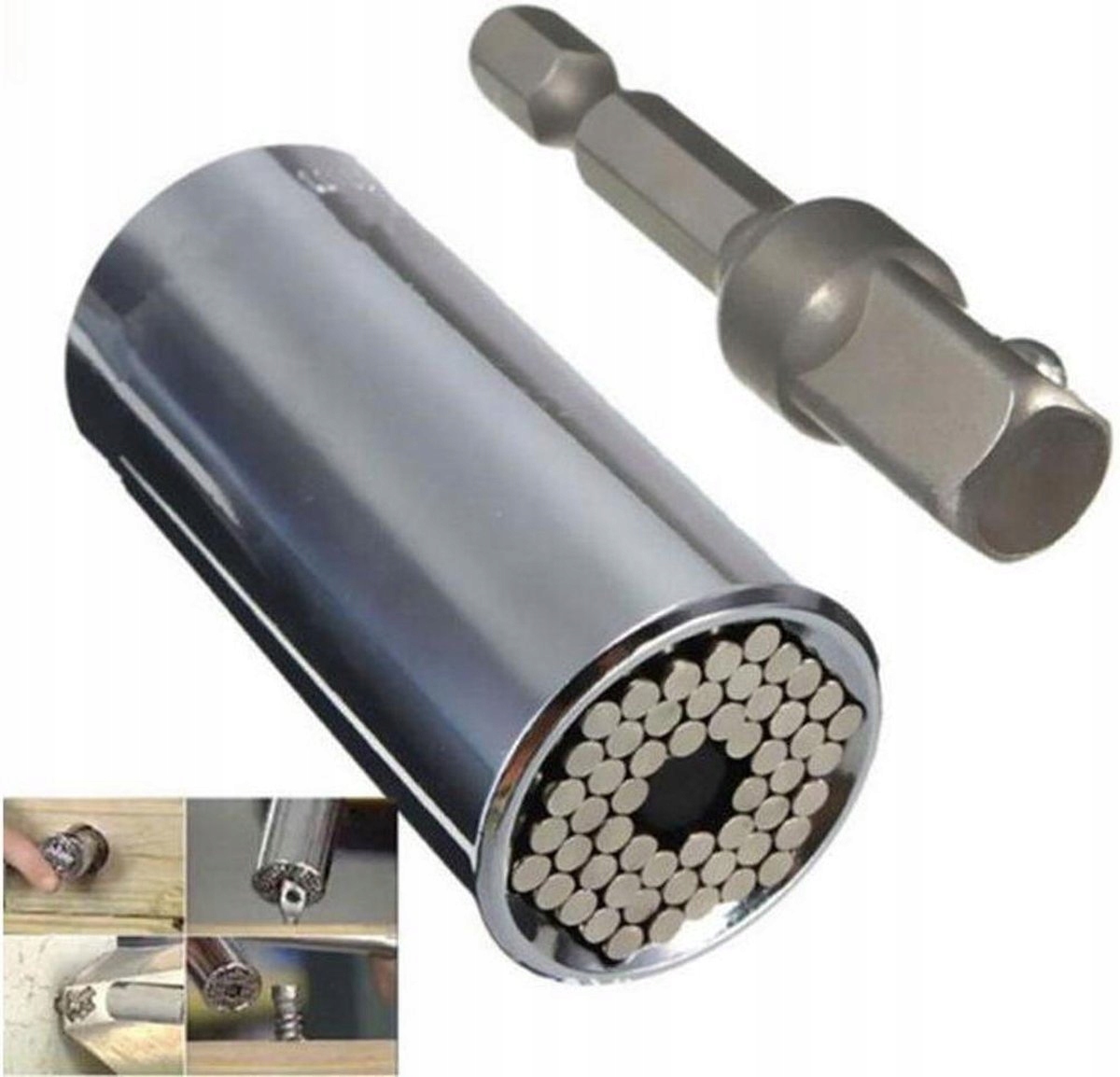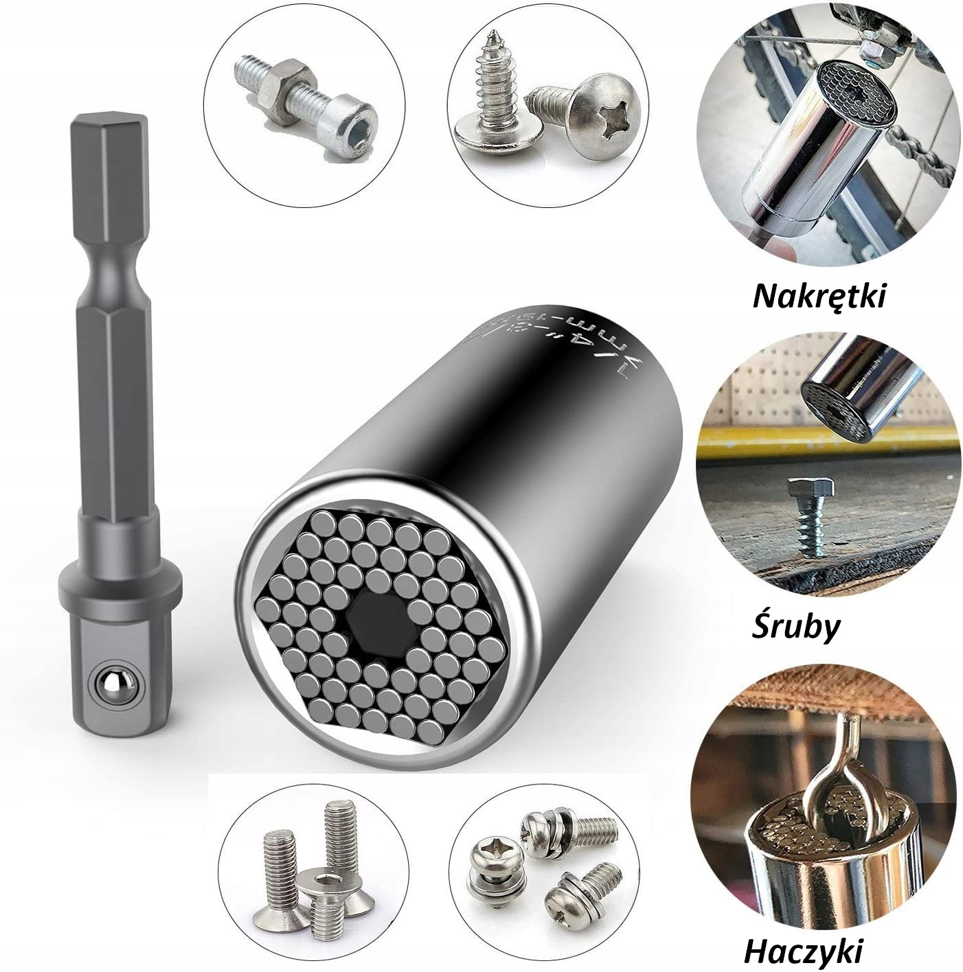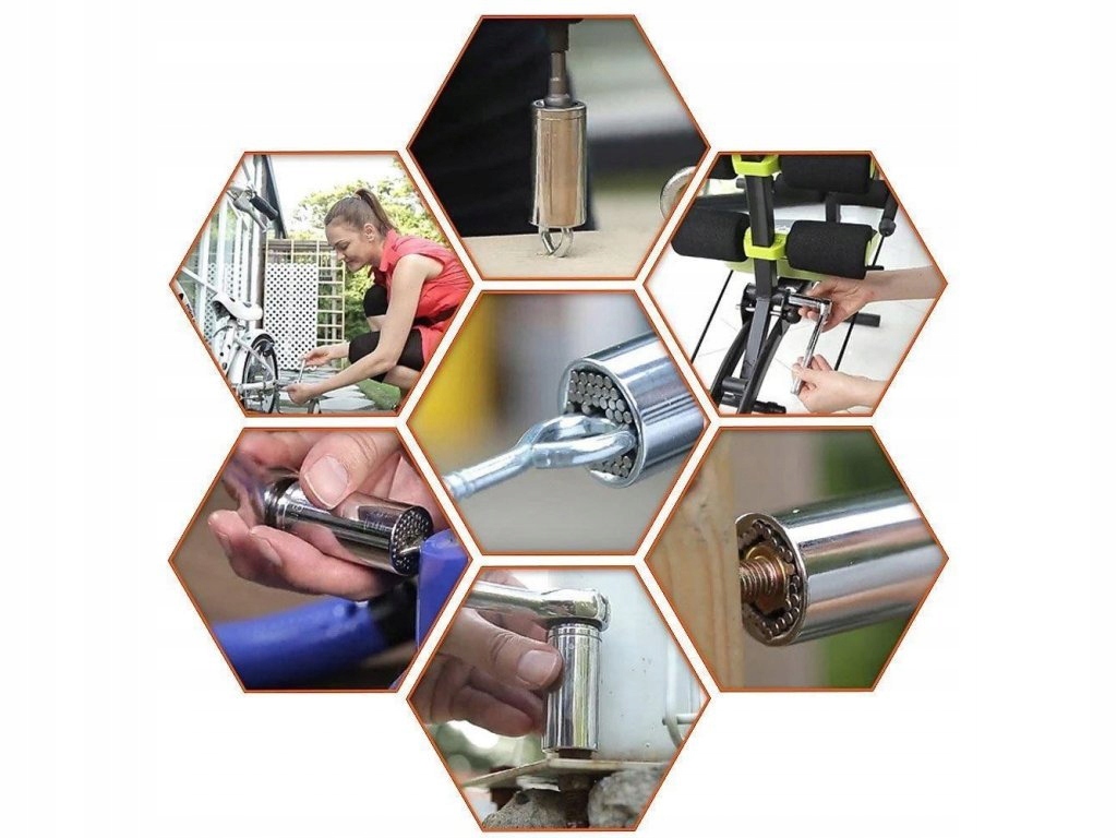 Uniwersalny klucz nasadowy 7-19mm to nasadka typu igiełkowego pasująca do wielu rodzajów łbów. Posiada specjalne metalowe słupki, które dostosowują się do kształtu śruby.