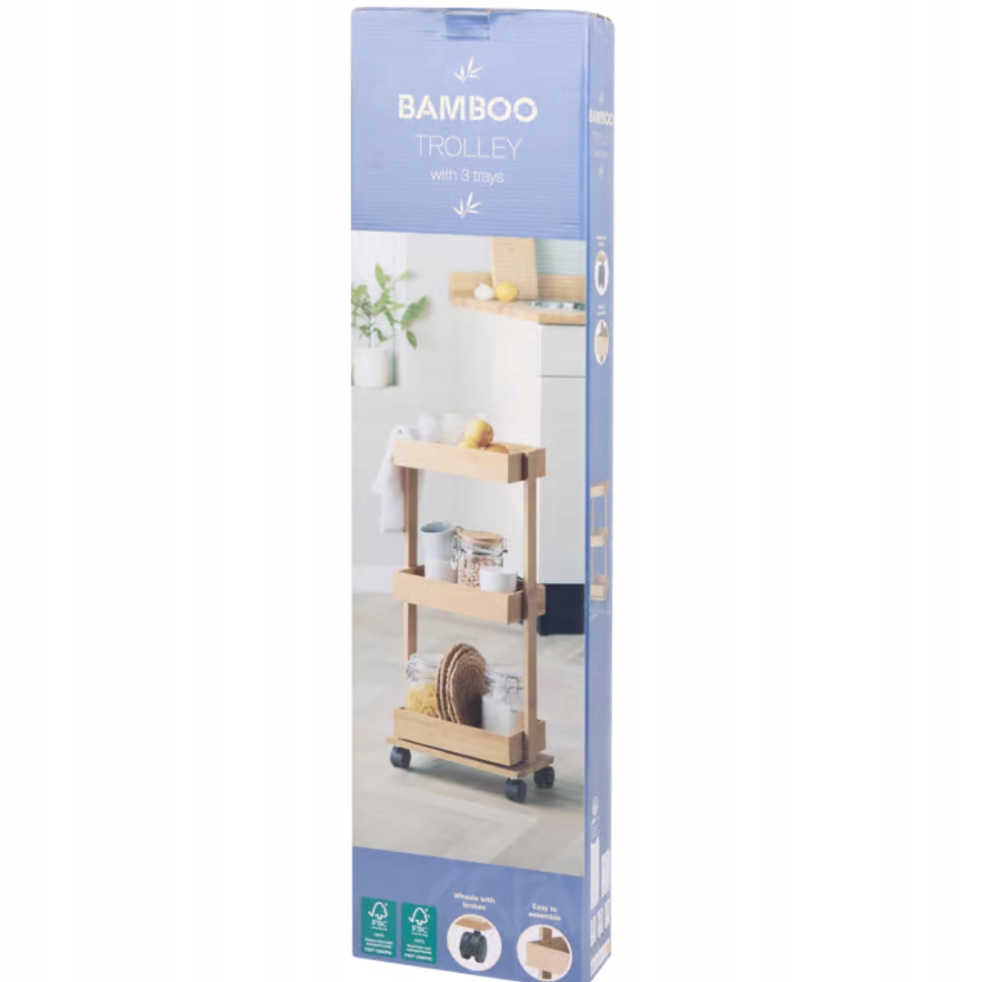 Wózek został wykonany z naturalnego drewna bambusowego – surowca znanego z wytrzymałości, odporności na wilgoć i estetycznego wyglądu. W odróżnieniu od produktów z tworzyw sztucznych, meble z bambusa są trwałe, stabilne i ekologiczne. Pozyskiwany w sposób zrównoważony, bambus posiada korzystny stosunek wytrzymałości do wagi, dzięki czemu konstrukcja wózka jest solidna, a jednocześnie lekka.