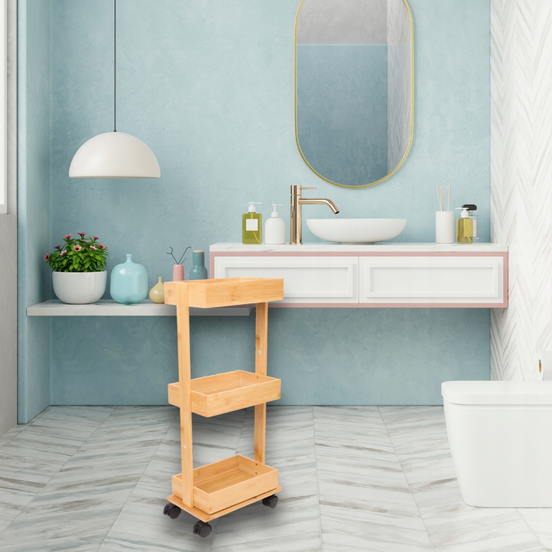 ✅Stylowa organizacja – dodaj odrobinę stylu do swojego wnętrza dzięki naturalnemu wyglądowi bambusa. Wózek nie tylko jest praktyczny, ale także estetyczny, co czyni go wyjątkowym elementem dekoracyjnym.