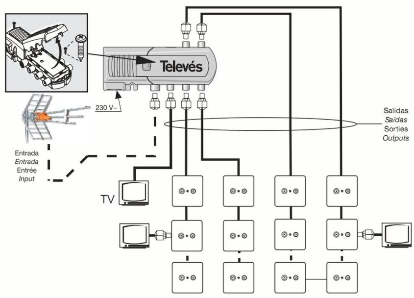 Hiszpański producent firma Televes gwarantuje wysoką jakość wykonania urządzeń do dystrybucji sygnału. Szeroka gama wzmacniaczy domowych stosowanych w MATV charakteryzuje się stosunkowo wysoką mocą wyjściową i niskim poborem prądu.