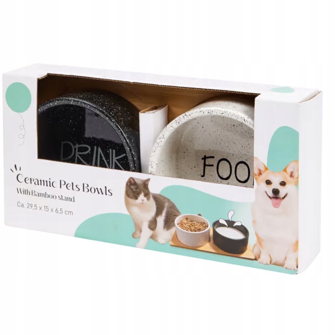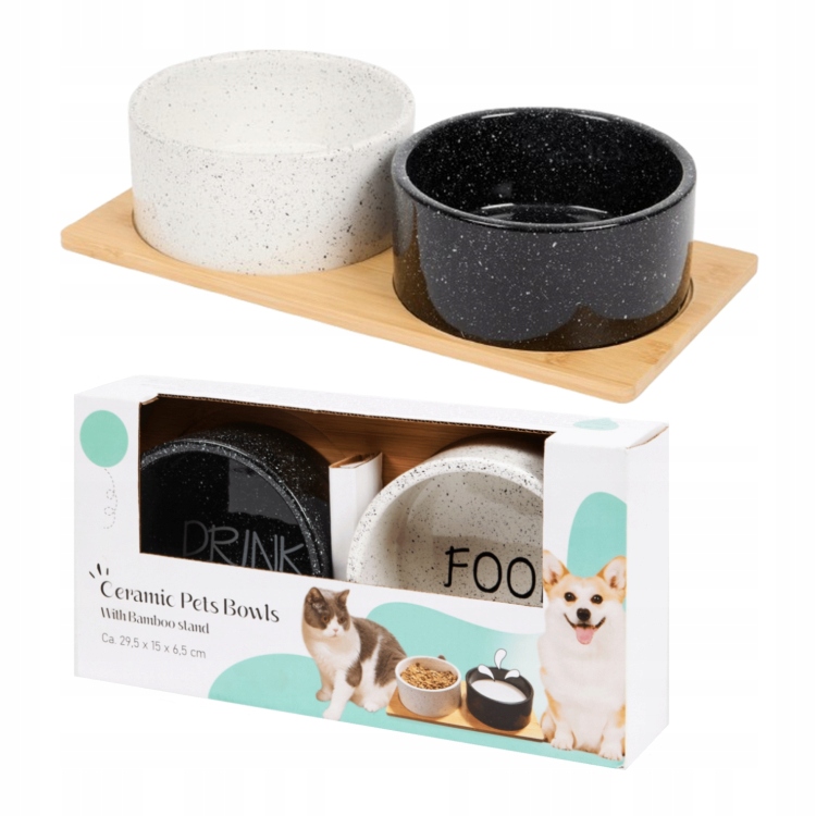 Zestaw ceramicznych misek dla zwierząt z bambusowym stojakiem to stylowe i praktyczne rozwiązanie dla Twojego pupila. W komplecie znajdują się dwie miski biała i czarna. Ceramiczne wykonanie zapewnia łatwość w czyszczeniu i trwałość, a bambusowy stojak dodaje elegancji i stabilności. Idealne zarówno dla kota, jak i małego psa. Świetnie sprawdzi się do podawania karmy i wody.