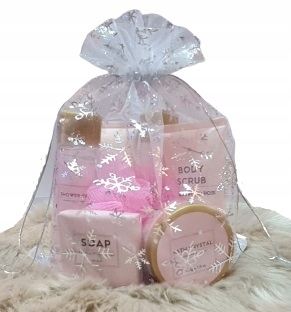 Zestaw idealnie nadaje się na prezent, opakowany w elegancki woreczek świąteczny.Skrywa w sobie wszystko co niezbędne do relaksującej kąpieli.