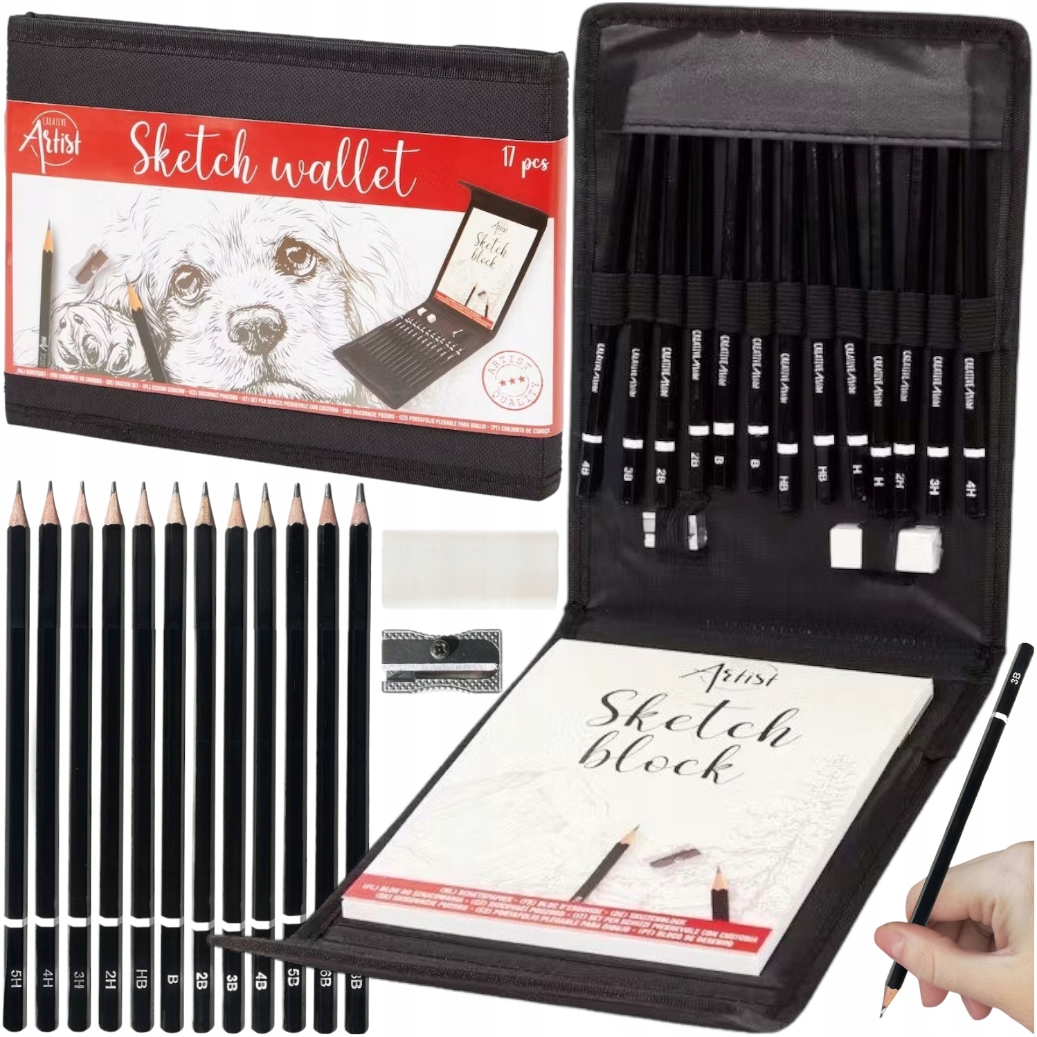 ✅ Ołówki, gumka i temperówka w poręcznym etui z blokiem do szkicowania