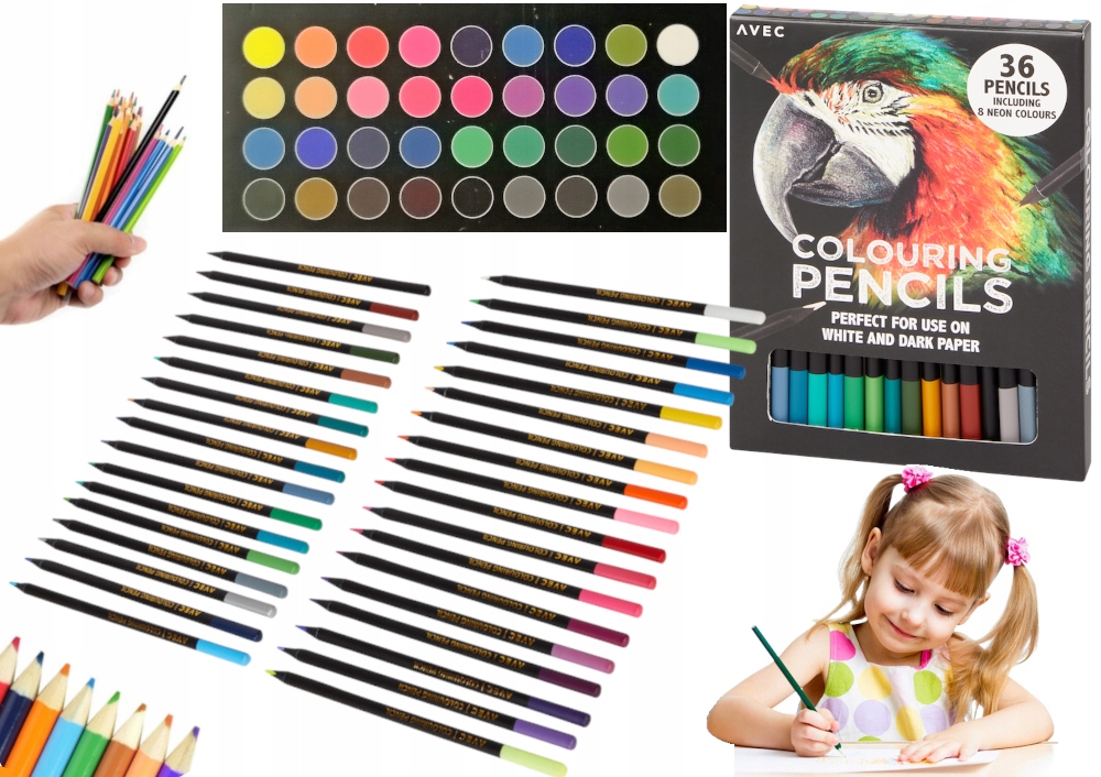 ✅ Kredki ołówkowe to zestaw 36 kredek o intensywnych, neonowych kolorach. Kredki nadają się do rysowania na białym i czarnym papierze. Kredki w szerokiej gamie kolorystycznej.