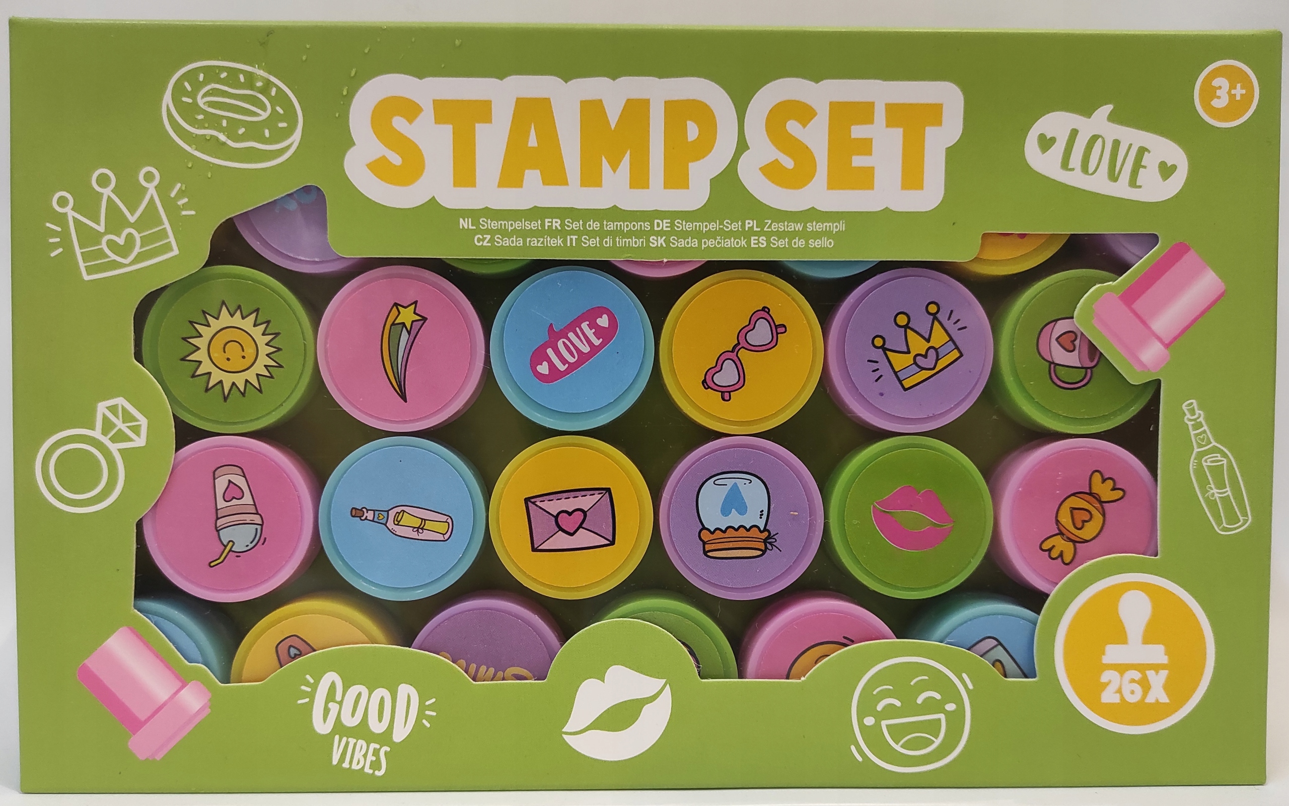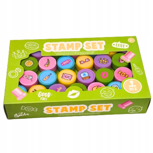 Zestaw uroczych stempelków nasączony kolorowym tuszem, gotowe do użycia.