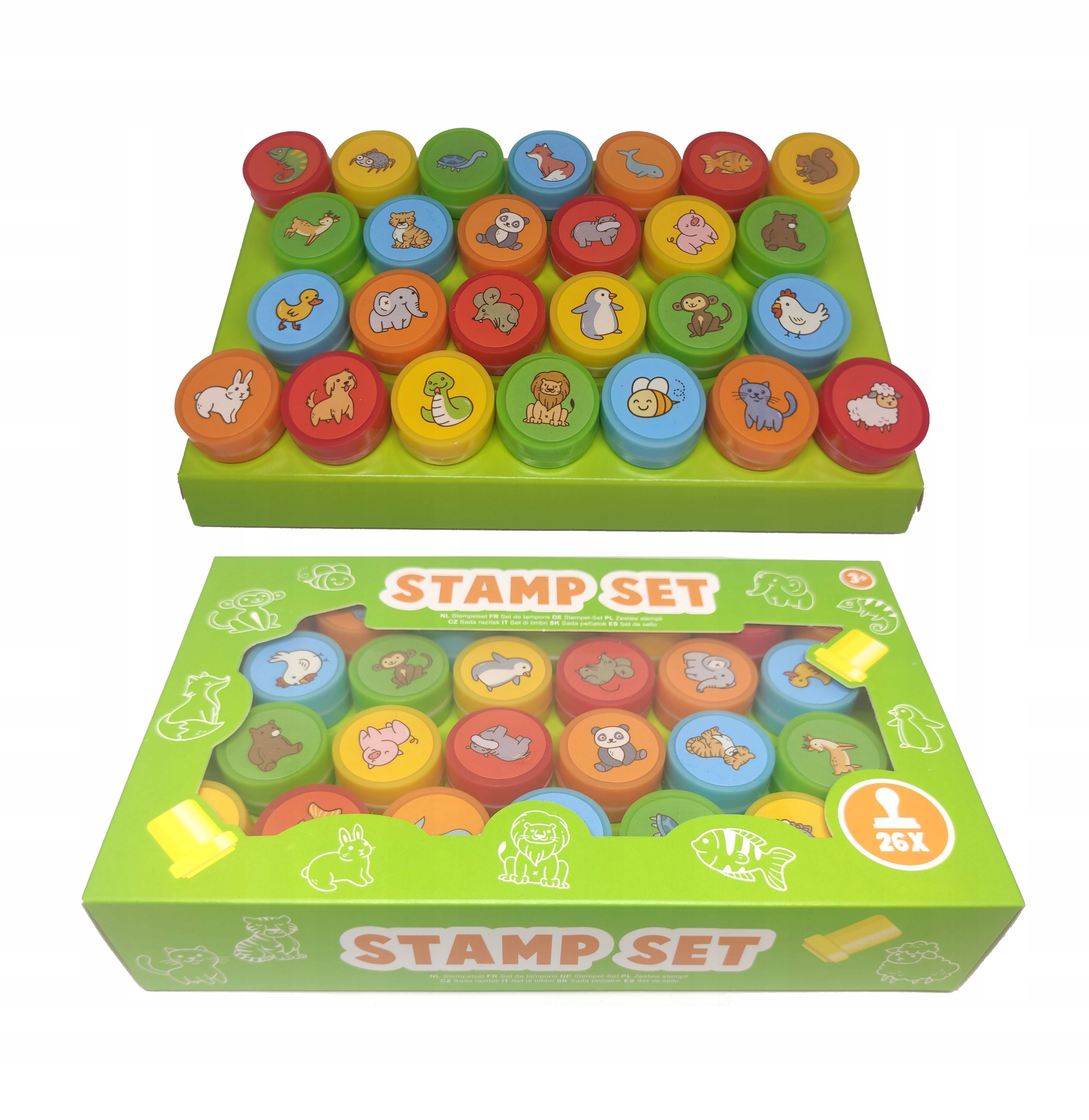 Super zestaw 26 sztuk pieczątek "ZWIERZĄTEK" aby w łatwiejszy i bardziej przystępny dla dziecka sposób, na zasadzie zabawy, zaznajomić go ze światem zwierząt.
