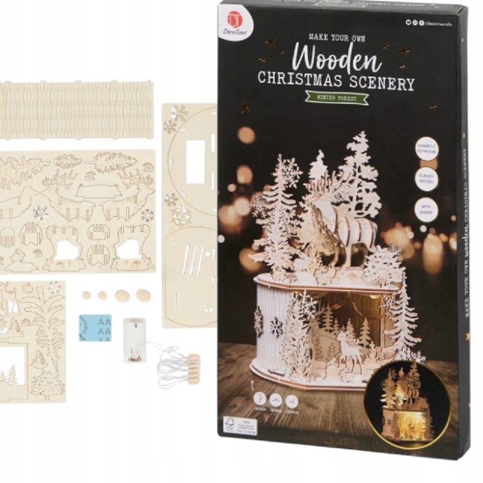 Zrób własną piękną scenkę świąteczną z zestawem DécoTime. Dzięki instrukcjom złożysz scenkę w mgnieniu oka. A lampki dopełnią całość.